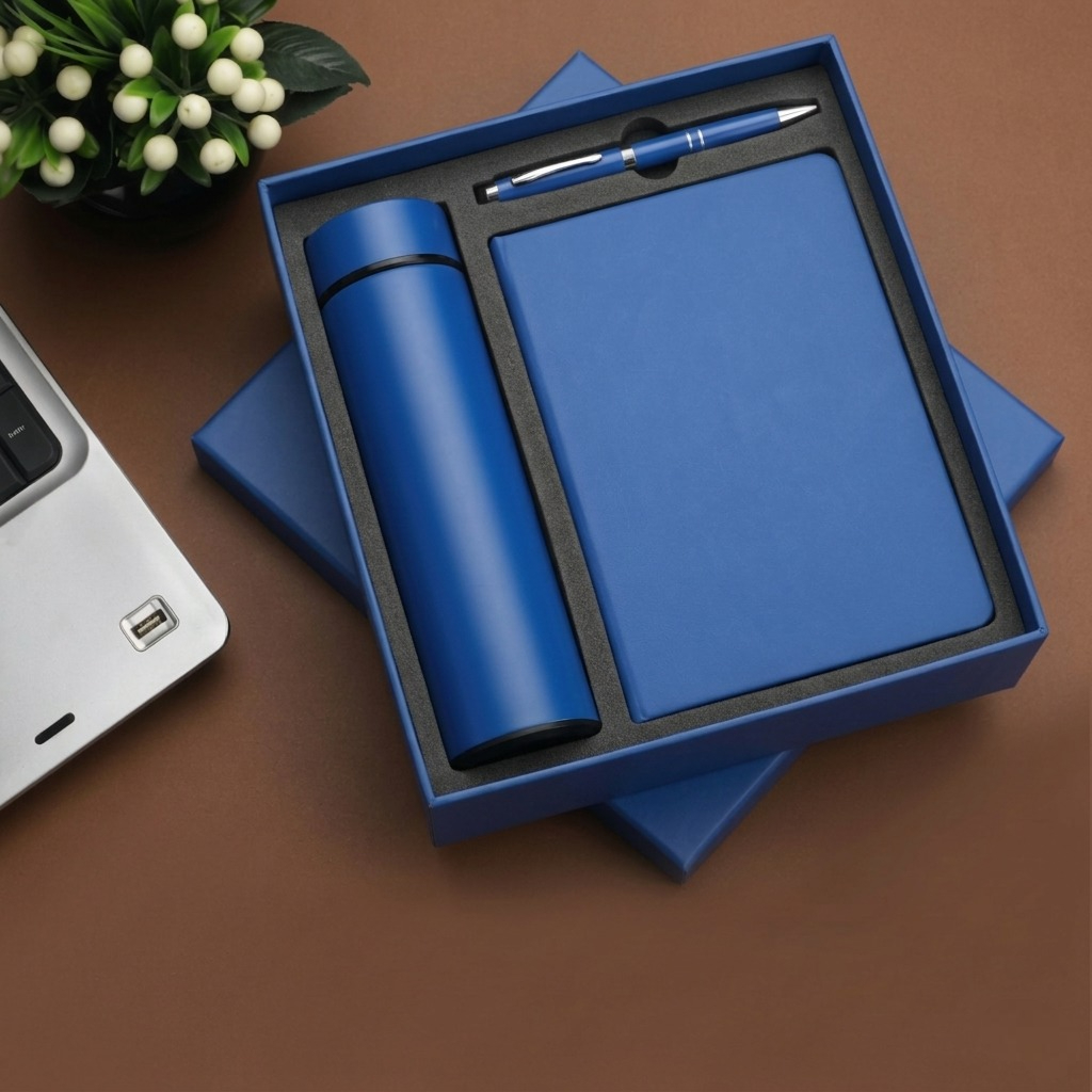 Make a lasting impression with this 3-in-1 Premium Gift Set, a perfect blend of elegance, utility, and modern innovation. This thoughtfully curated combo includes a stylish diary, a smooth-writing premium pen, and a smart temperature display bottle—making it an ideal choice for professionals and corporate gifting.