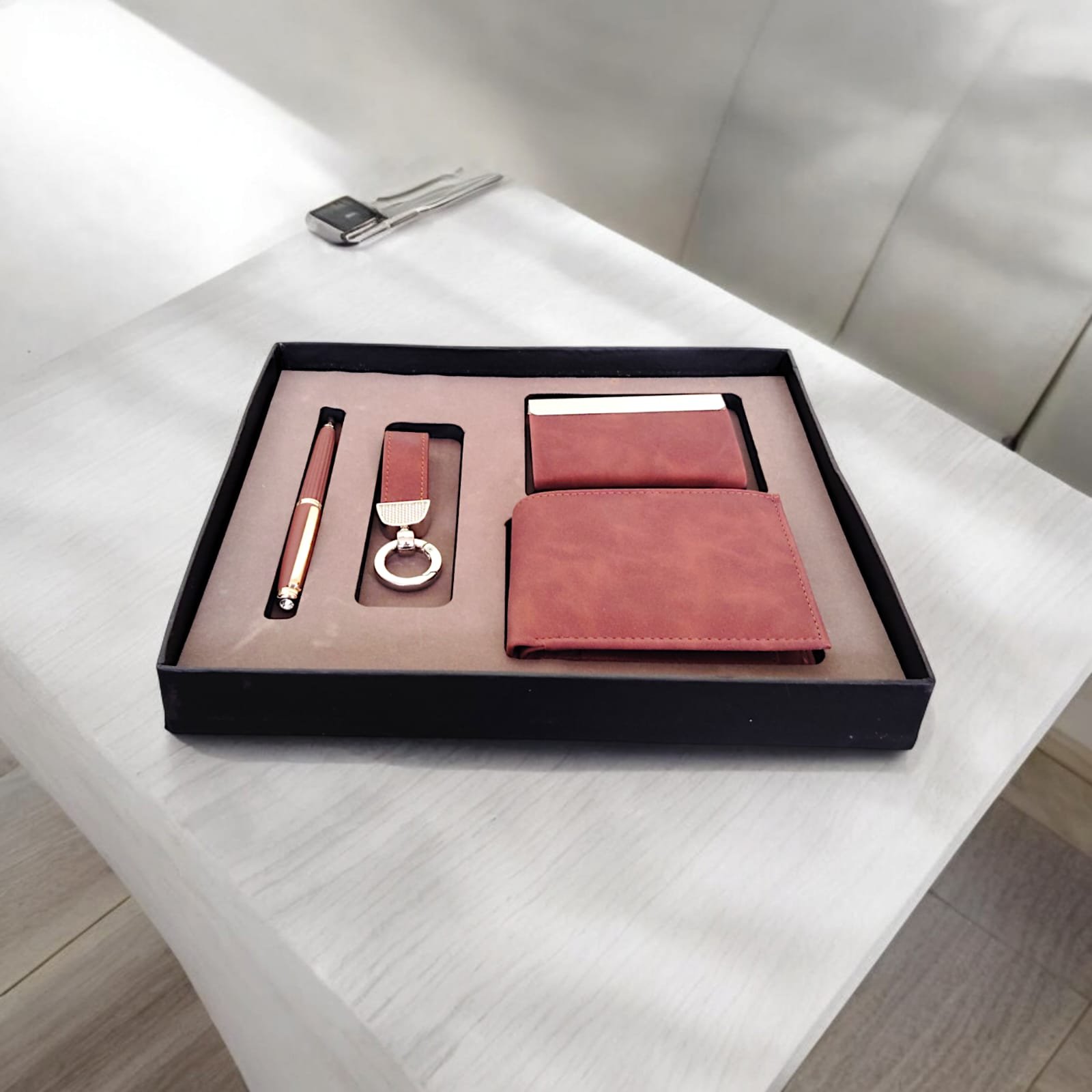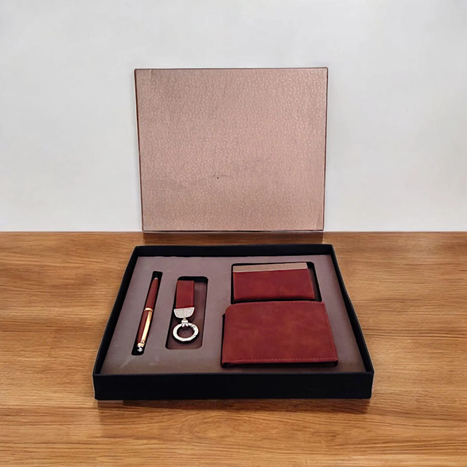 4 In 1 Corporate Gift Set (1pc Gents Wallet + 1pc Pen + 1pc Keychain + 1pc Card Holder)