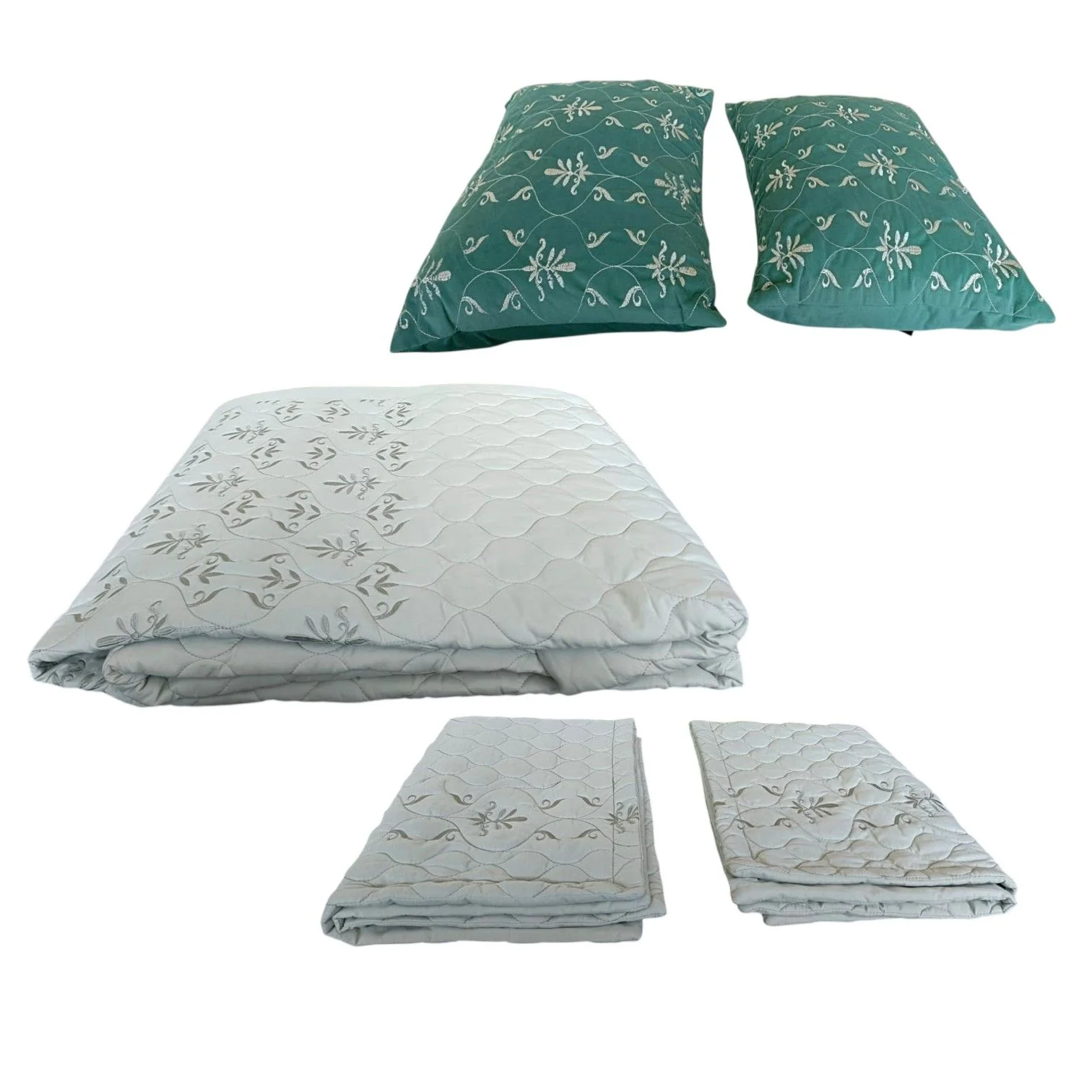 • set Includes: 1 Embroidered Bedspread + 2 Pillow Covers, 2 cushions with fillers.