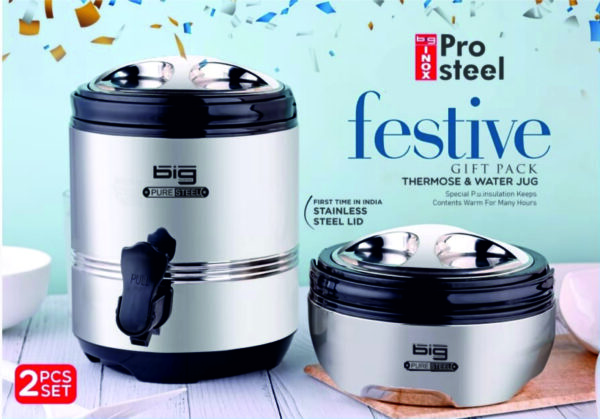 Big Inox Pro Steel Festive 2 Piece Gift Pack (1pc Water Jug – 3.5 L + 1pc Casserole – 1.8 L)