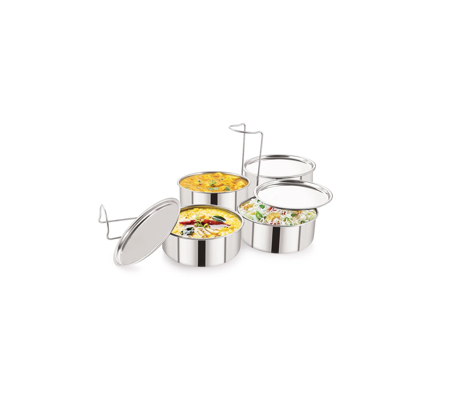 • Made from grade virgin plastic 4 stainless steel containers with lifter.