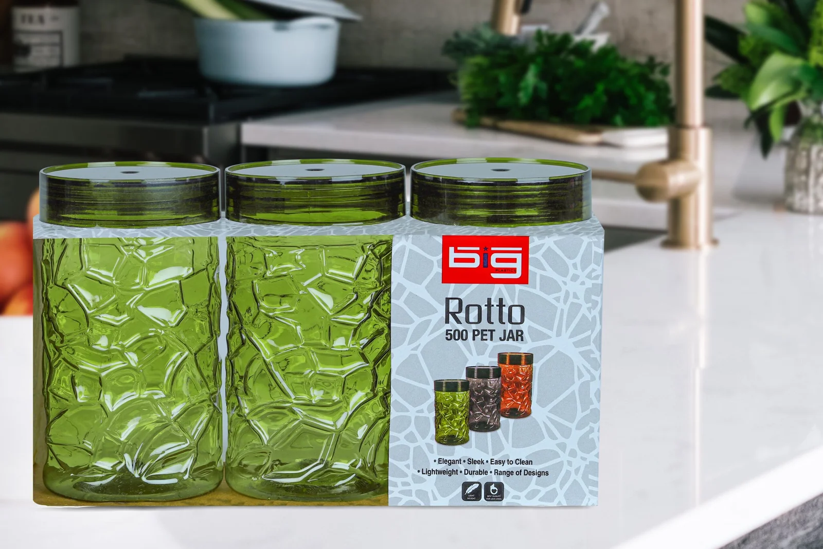 - Big Rotto Round Plastic Jar 500 ml (Set of 3) is a multipurpose airtight storage jar.