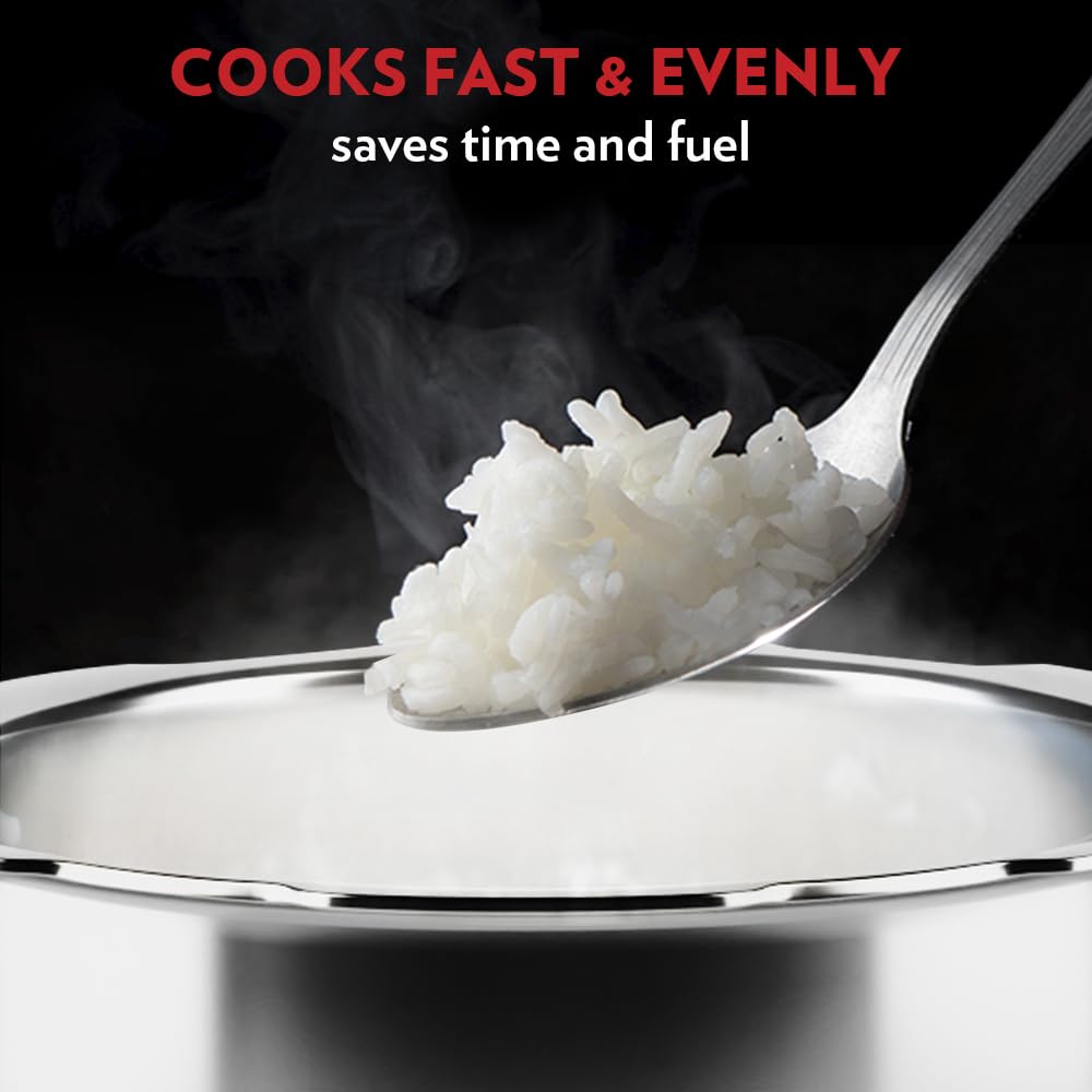 - Food-Grade SS304: Cooking is not just about taste but also health. Our cooker is crafted from food-grade SS304 for safe and healthy cooking, ensuring a long product life. The cooker is resistant to pitting or corrosion, maintaining its hygienic standards. The Mirror finish on the outside wall adds a touch of elegance to your kitchen.