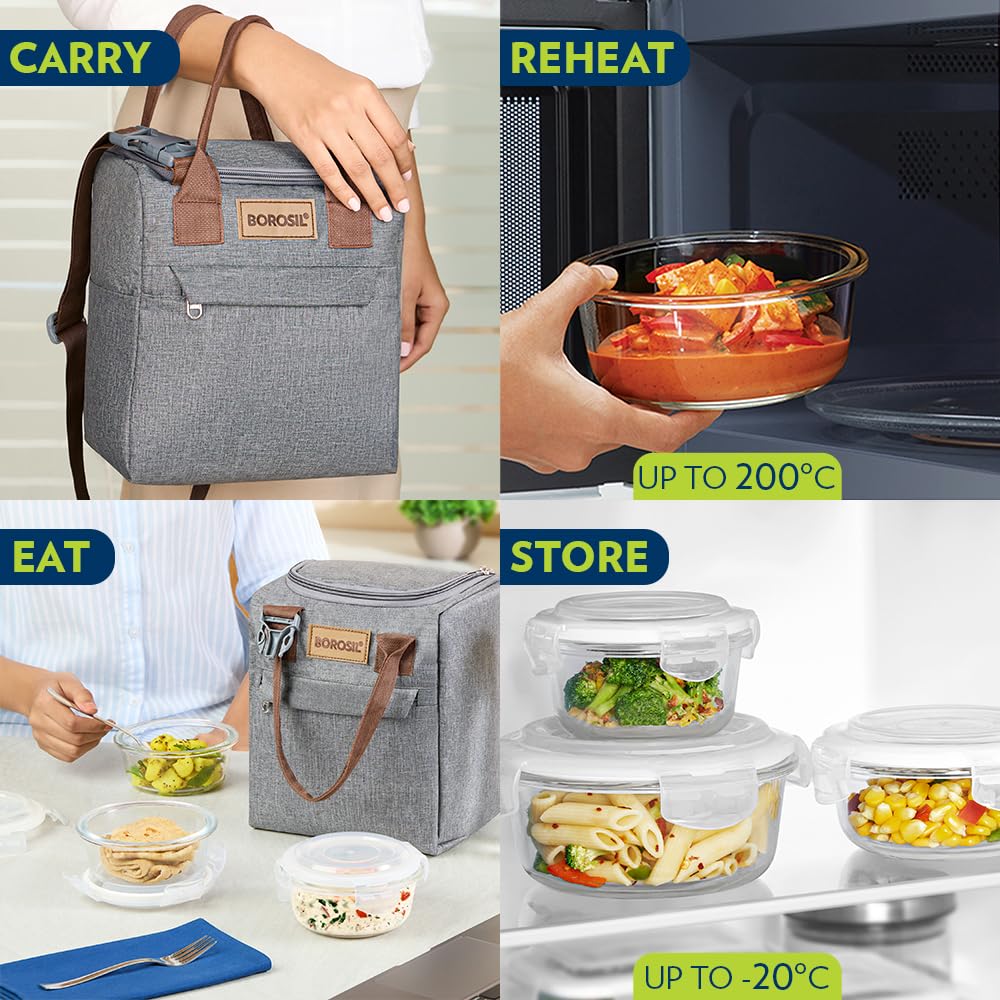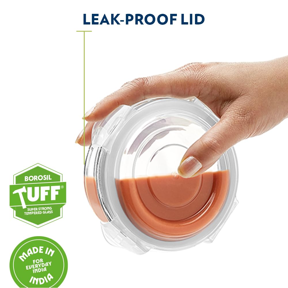 Made from durable, food-grade glass, the containers are non-toxic, stain-resistant, and odor-free, ensuring your food stays fresh and safe. The airtight and leakproof lids prevent spills, allowing you to carry liquids like dal, curry, and gravies with confidence.