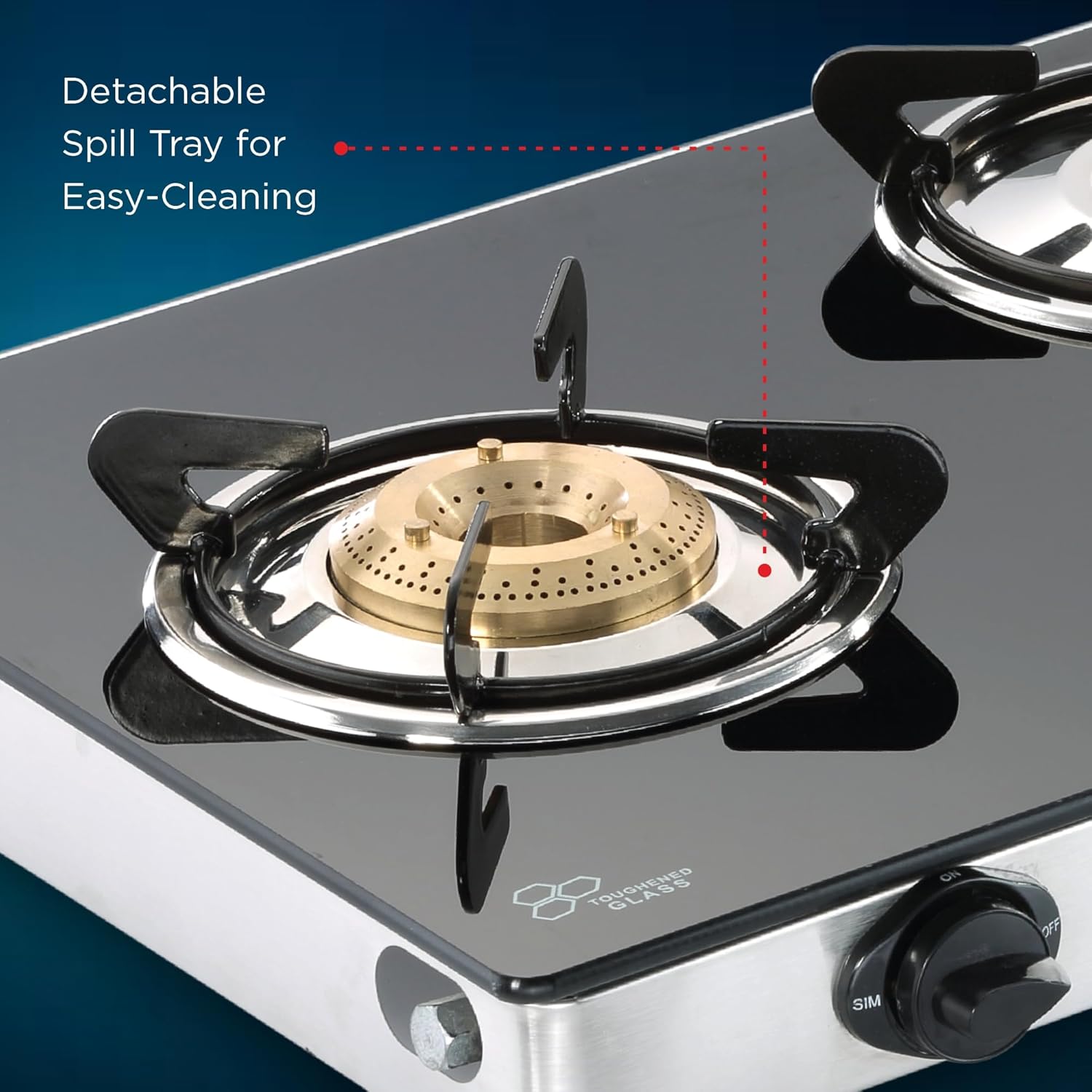 - Our Lightweight glass top gas stove equipped with high quality easy to clean glass , integrated drip tray and 360 degree nozzle exponentially elevates the ease of use quotient.