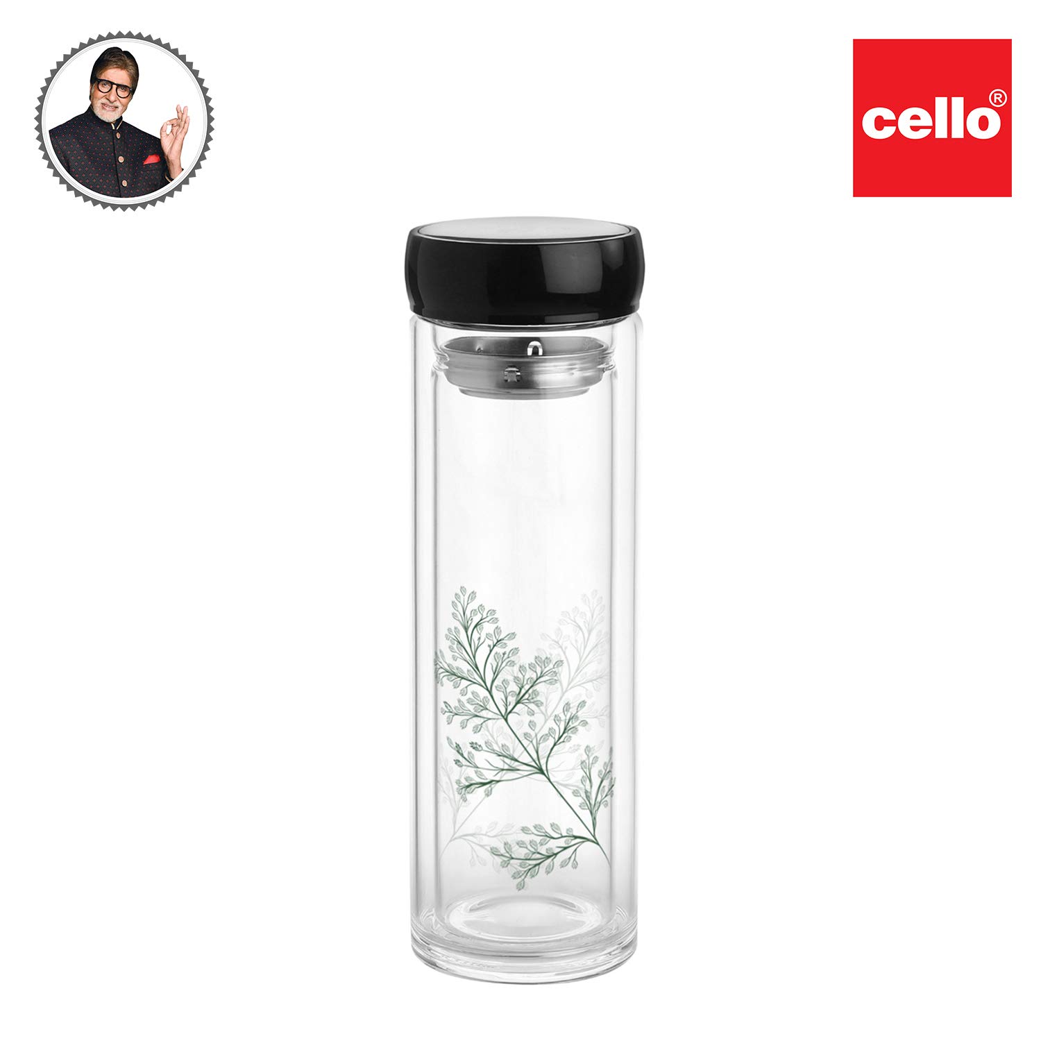Cello H2O Double Wall Glass Water Bottle, 400ML