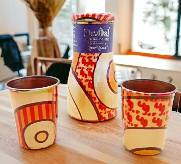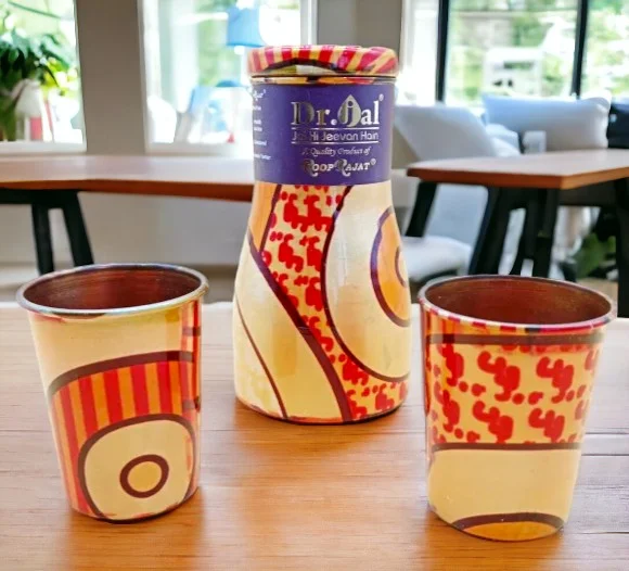 Dr.Jal 3 Piece Gift Set – 1pc Copper Sugar Pot, 2pc Copper Glass Set Printed