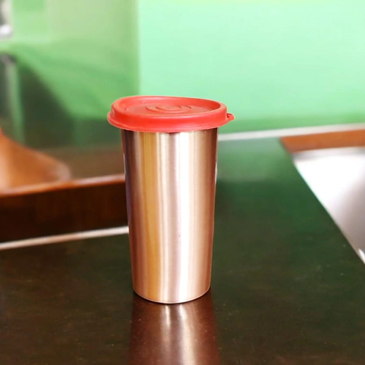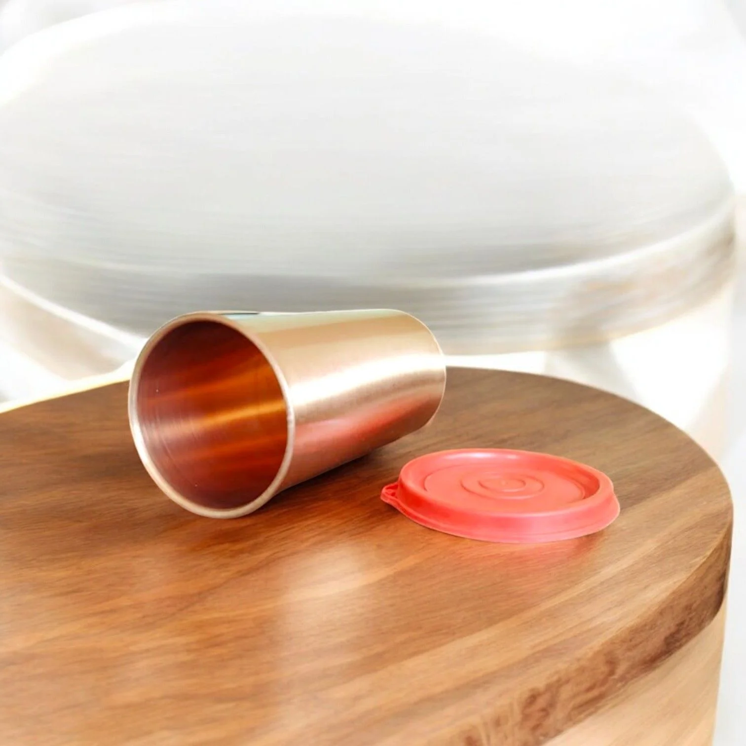 • Copper water tumbler with flip-top closure for daily use at home or office
