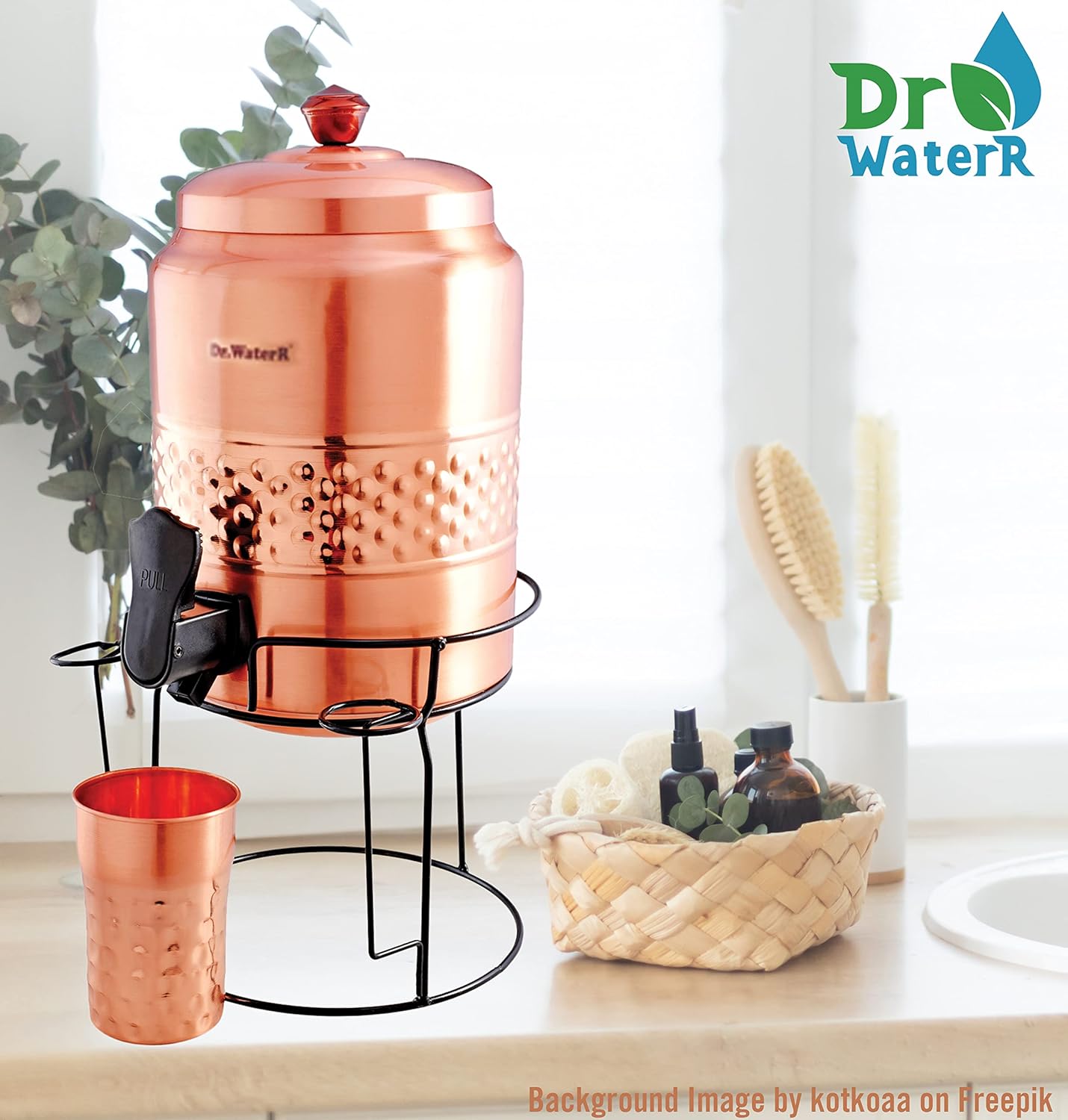 Dr.WaterR DE/608 Copper Matka 5 Ltr with 1 Glass & Stand