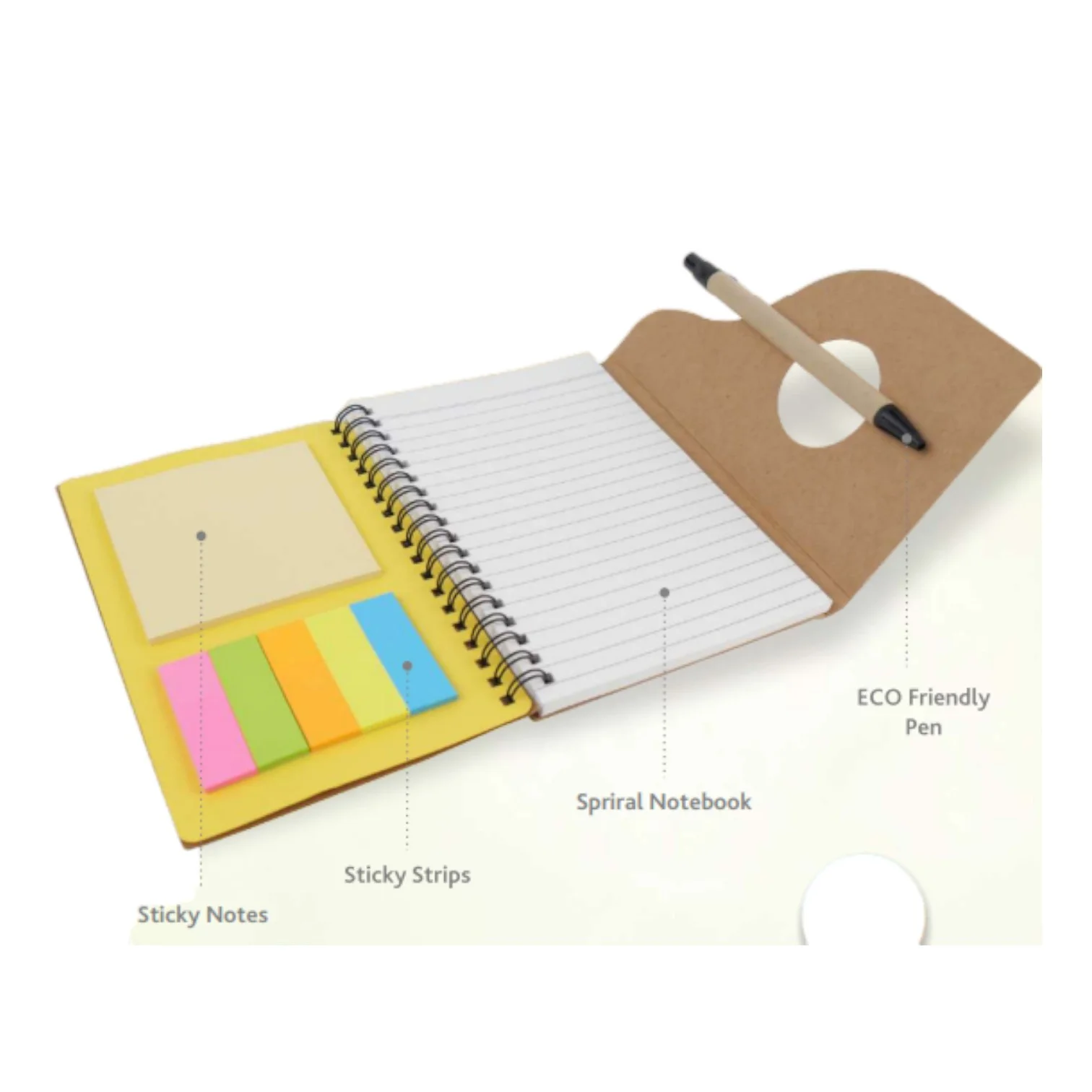 • Spiral notebook. Eco friendly pen. No. of sheets in note book 50.