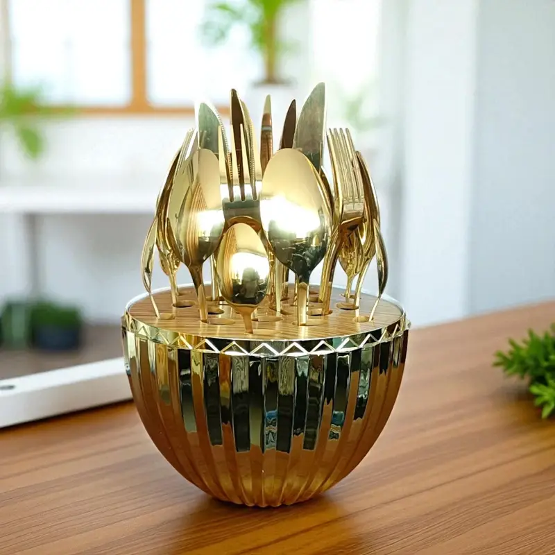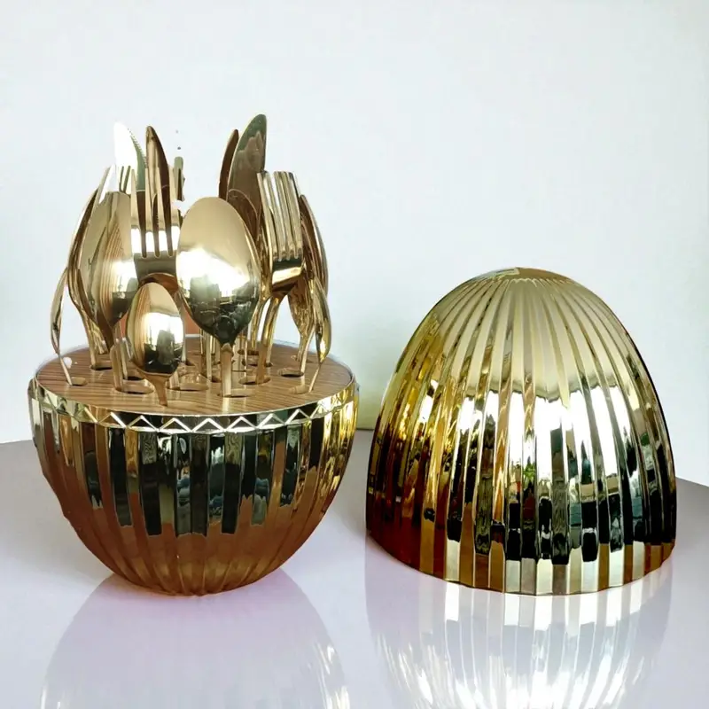 - Elegant Design: Stylish divet egg-shaped spoon stand with a stunning gold color finish, adding a touch of sophistication to any kitchen or dining table.