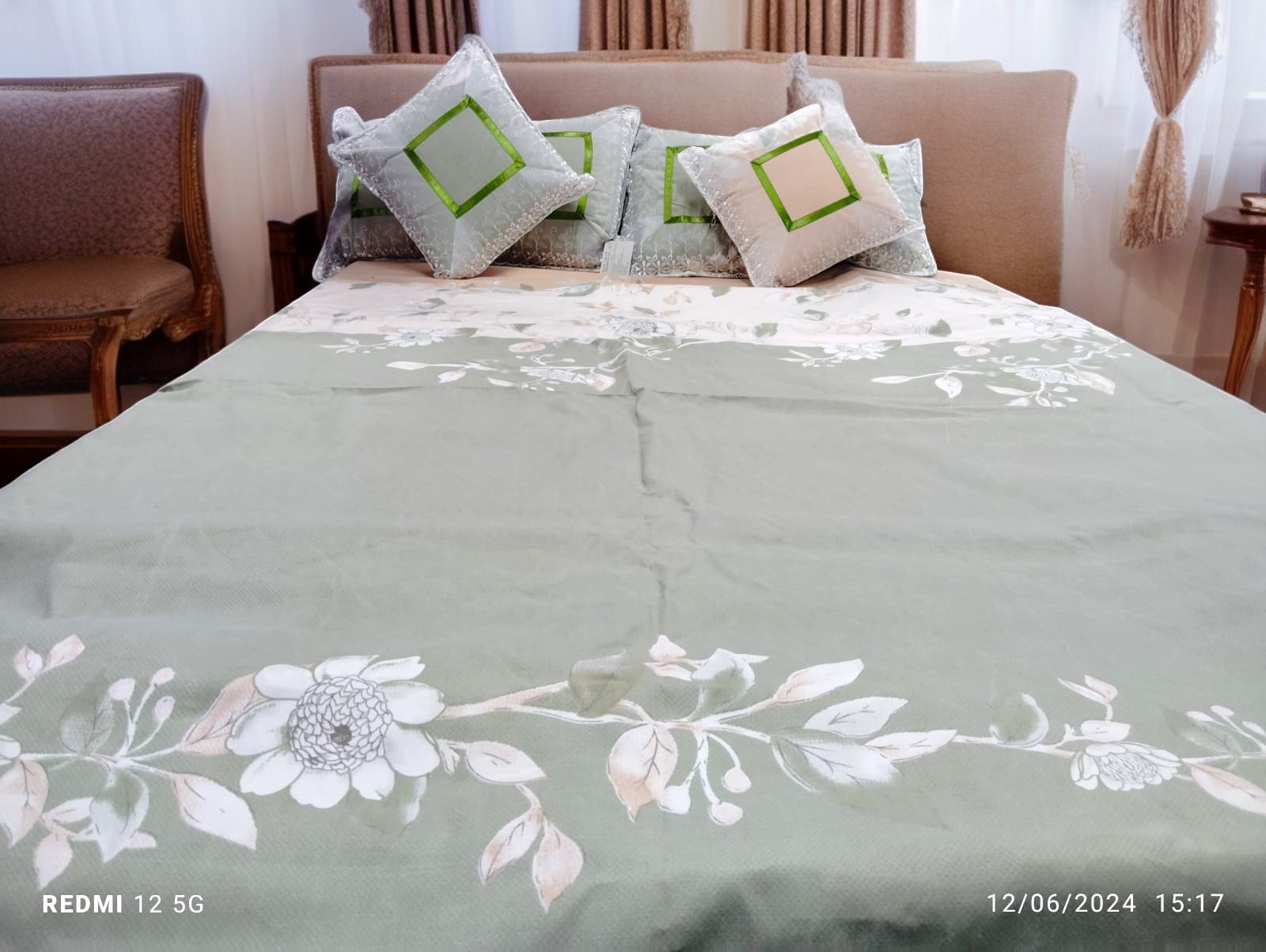 - Package contents: 1pc bedsheet, 2pc pillow cover, 2pc cushions.