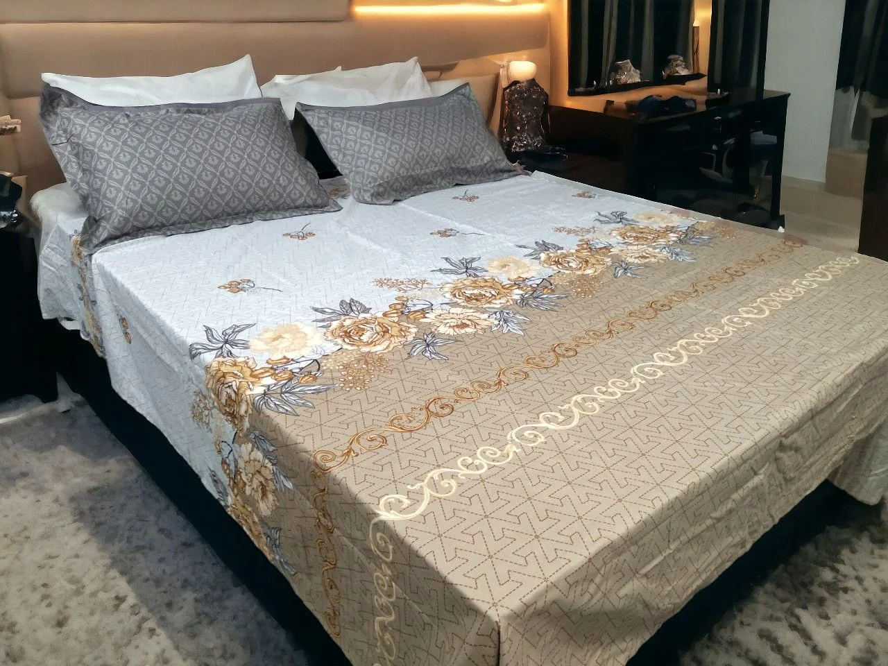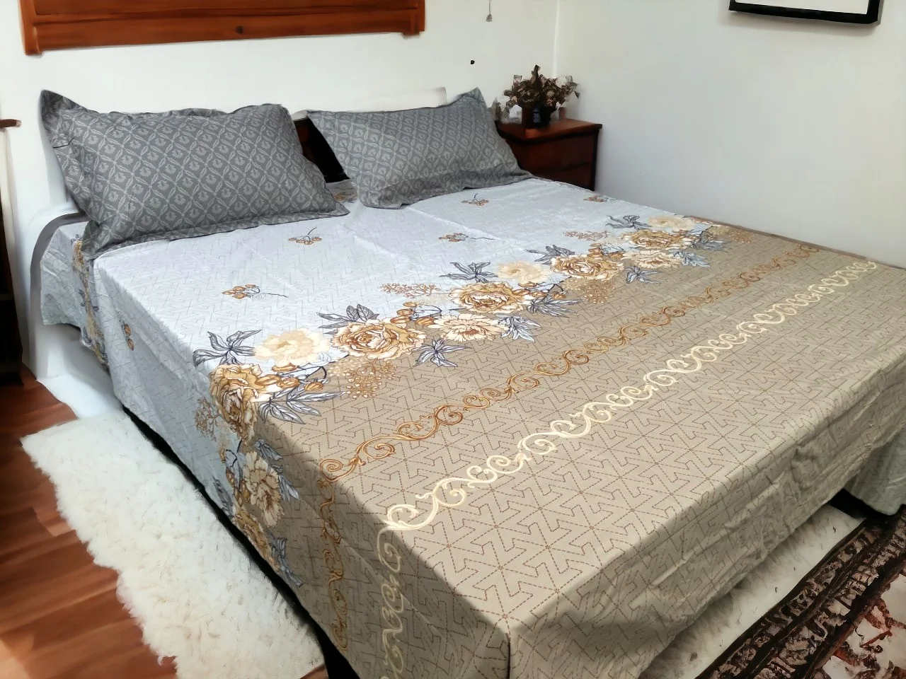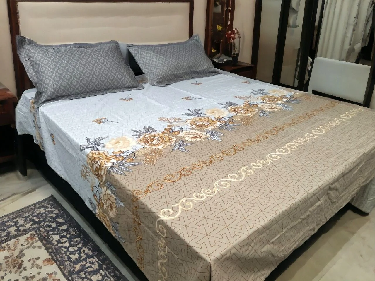 - Premium cotton Finish bedsheet. Size: (1pc Bedsheet – 230 X 250 CM) + (2pc Pillow Case – 46 X 69 CM).