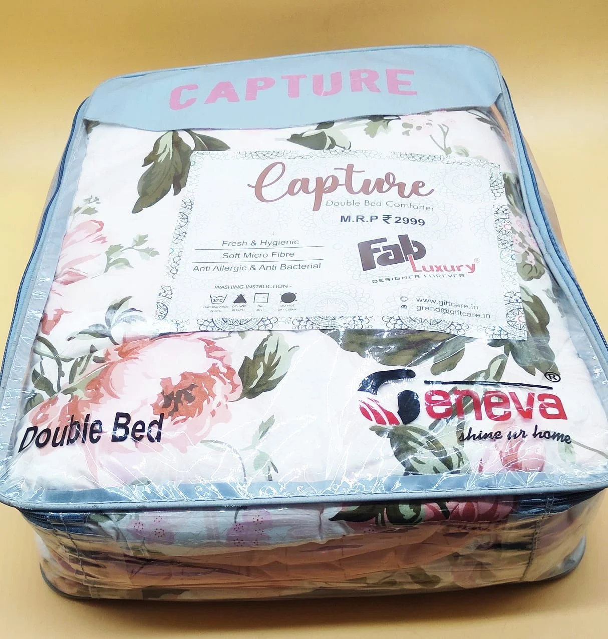 - Size: Double Bed. Print: Floral. Material: Micro fiber.