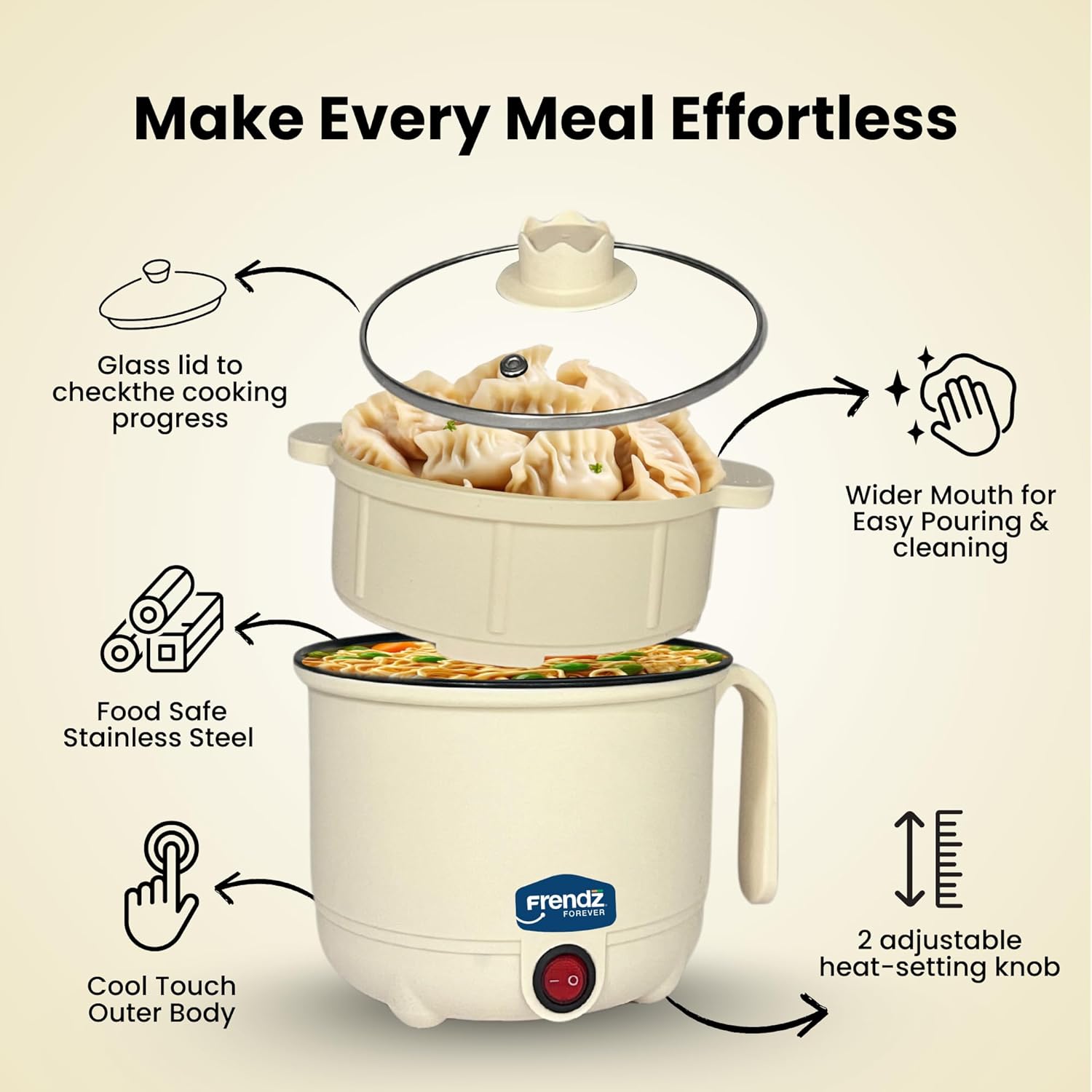 With the Frendz Buzz Multi Kettle, you don’t just cook—you enjoy quick, healthy, and efficient meal preparation anytime, anywhere.