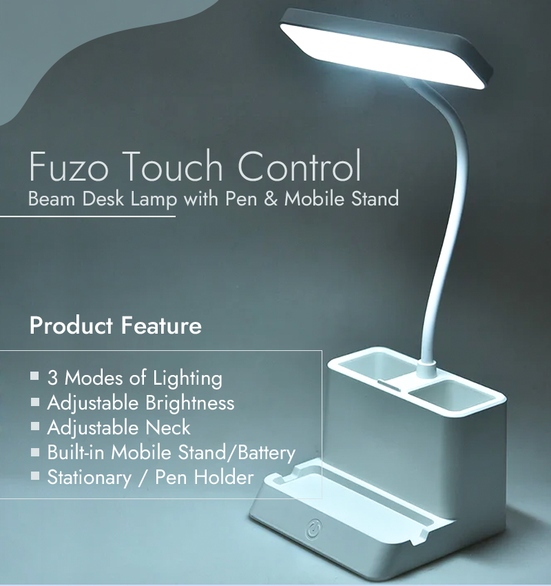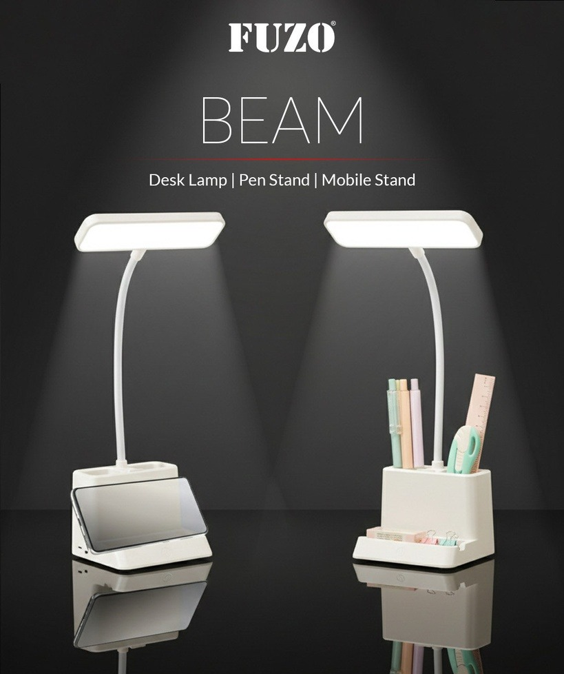 Fuzo Beam Desk Lamp with Pen Stand & Mobile Holder – Multi-Function LED Study Lamp | Office & Study Table Organizer