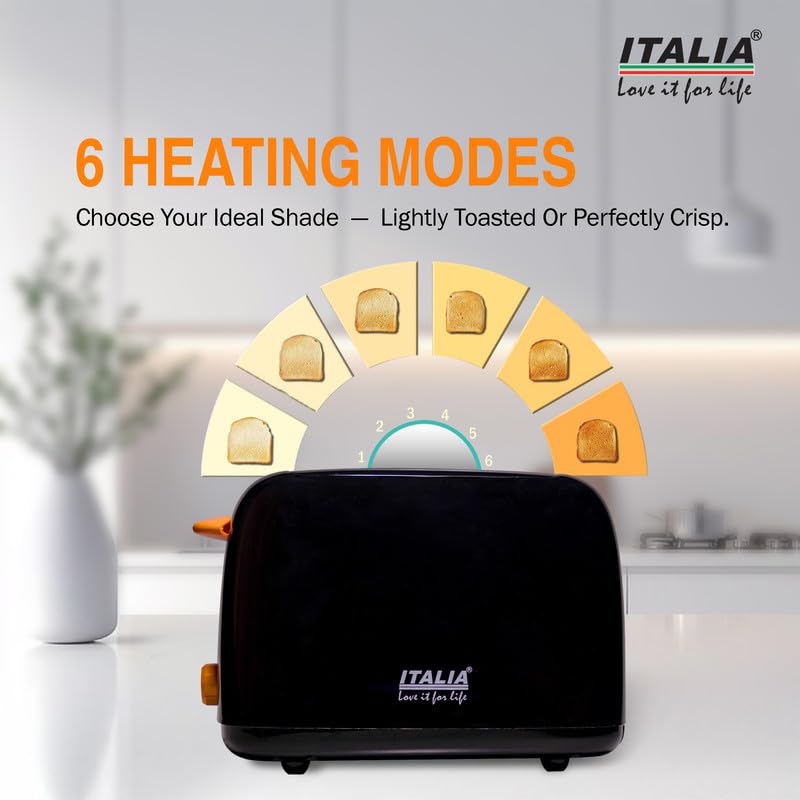 - PERFECT TOAST EVERY TIME WITH 6 BROWNING MODES: Get your ideal slice of toast, every morning. Choose from 6 adjustable heating modes, from lightly golden (level 1) to dark and perfectly crisp (level 6). Enjoy consistent and customized results for the whole family. 🍞