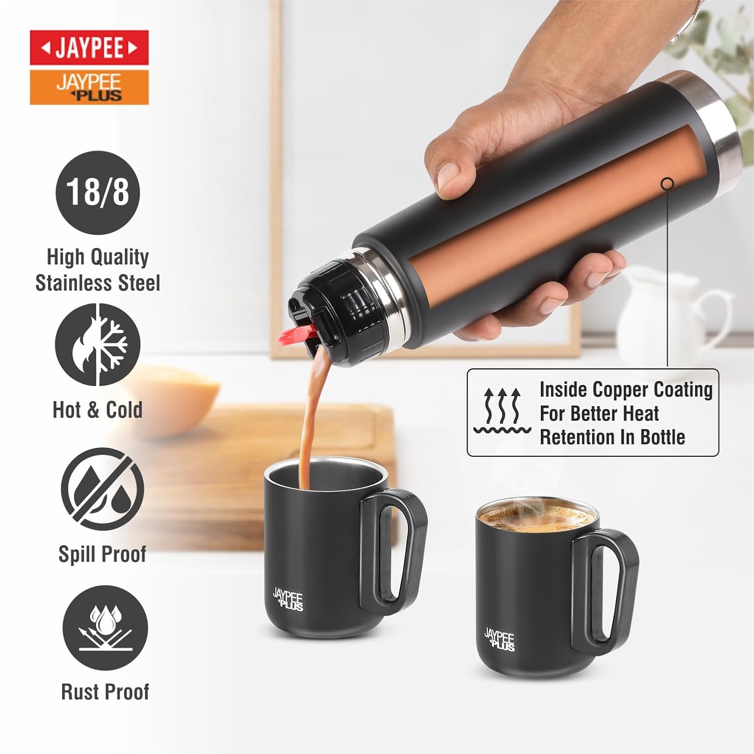 Crafted from high-quality stainless steel, this coffee set is rust-resistant, durable, and built for daily use. The leak-proof lid prevents spills, making it ideal for travel, office, and outdoor use.