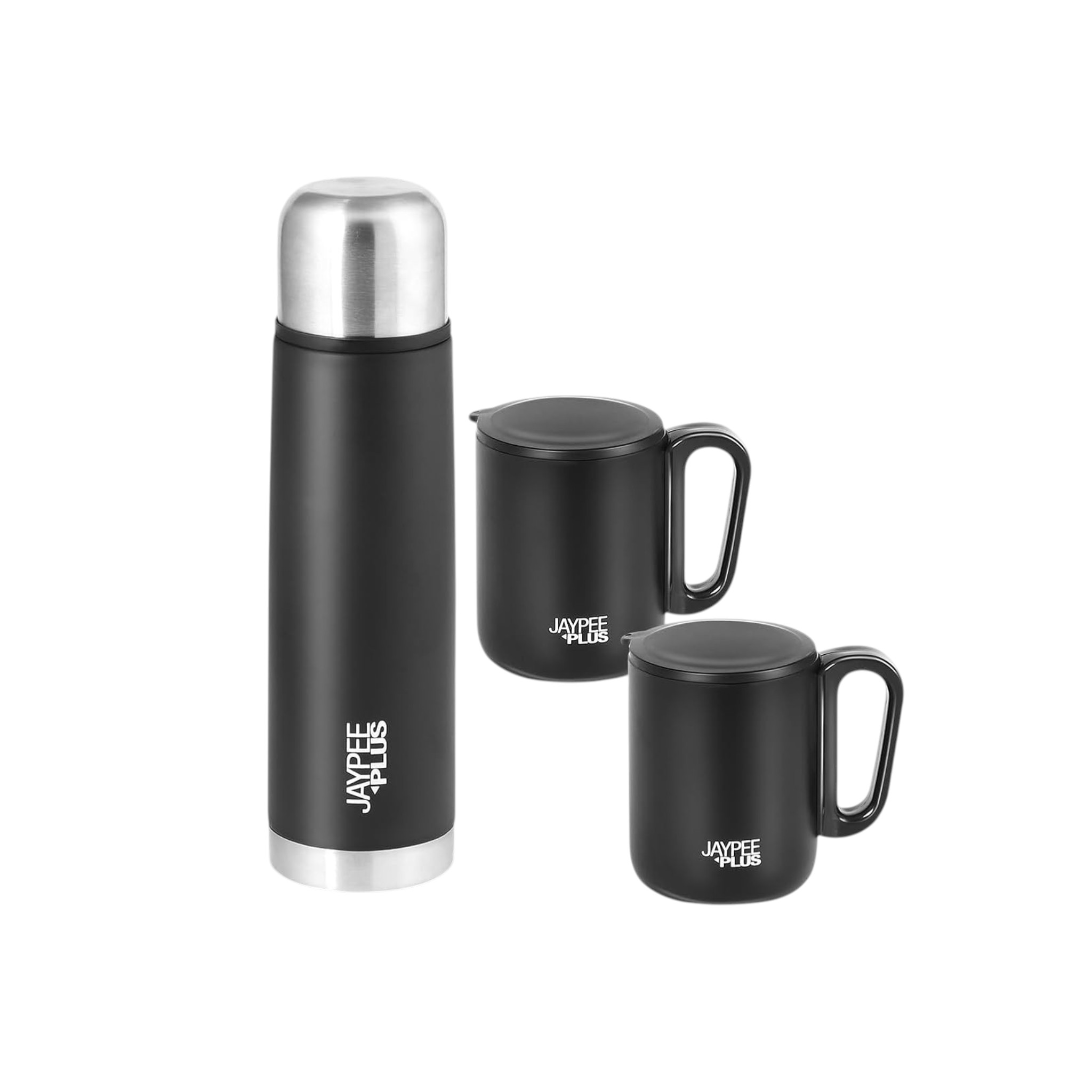 - 3-piece set: 1 vacuum bottle (500ml) + 2 mugs