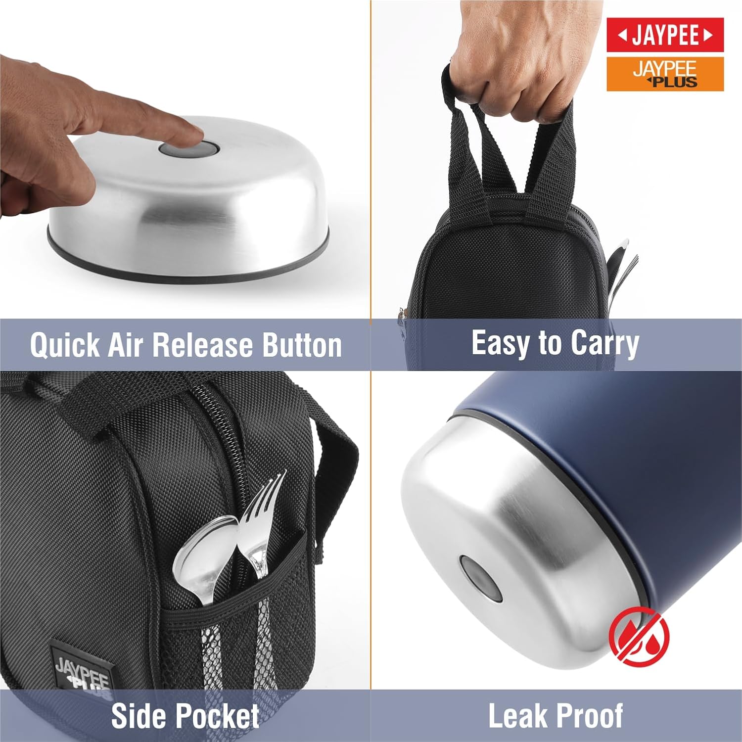 - Jaypee food jar for hot meal comes with a high-grade quality carry bag, featuring a side pocket utensil pocket for convenient storage of spoon and fork. Perfect for office , School , Gym & Picnics meals.