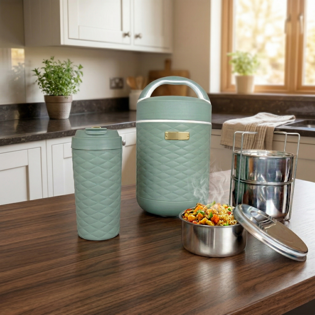 - 🎁 2-piece combo set (Tiffin Box + Vacuum Flask)
