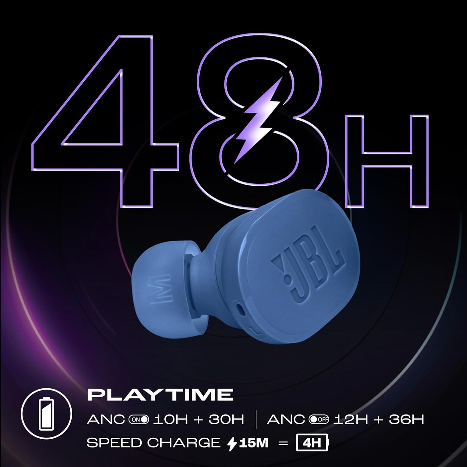 - LONG PLAYTIME WITH QUICK CHARGE: You can enjoy uninterrupted music with a total of 48 (12+36) hours of battery life, or 10 hours of playtime with an additional 30 hours provided by the charging case when the noise cancelling feature is activated. If you need a quick power-up, simply charge for 15 minutes with Speed Charge to obtain an additional 4 hours of playtime