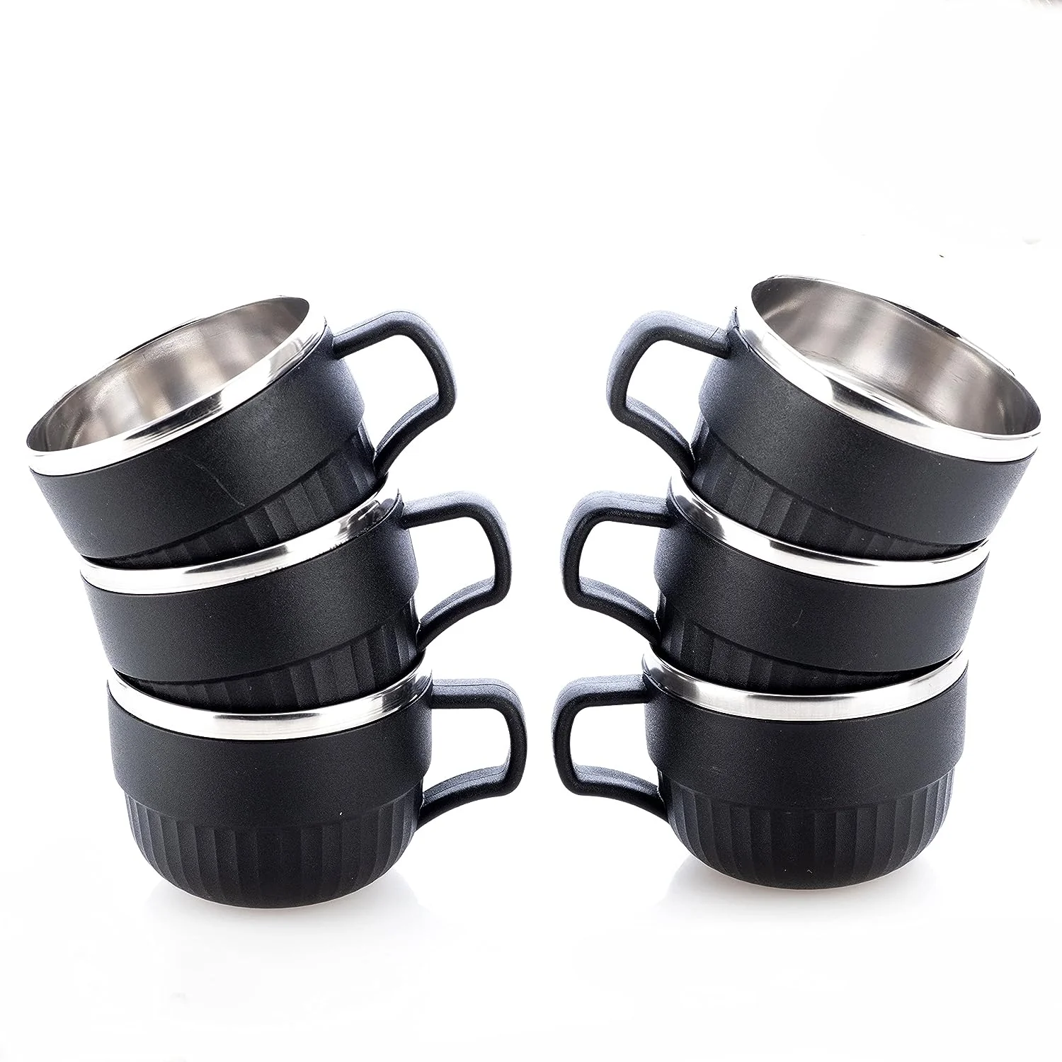 - Insulation: The stainless steel layer provides insulation to keep hot drinks hot and cold drinks cold for longer periods of time, which makes the cups ideal for serving a variety of beverages, from coffee and tea to juice and water.