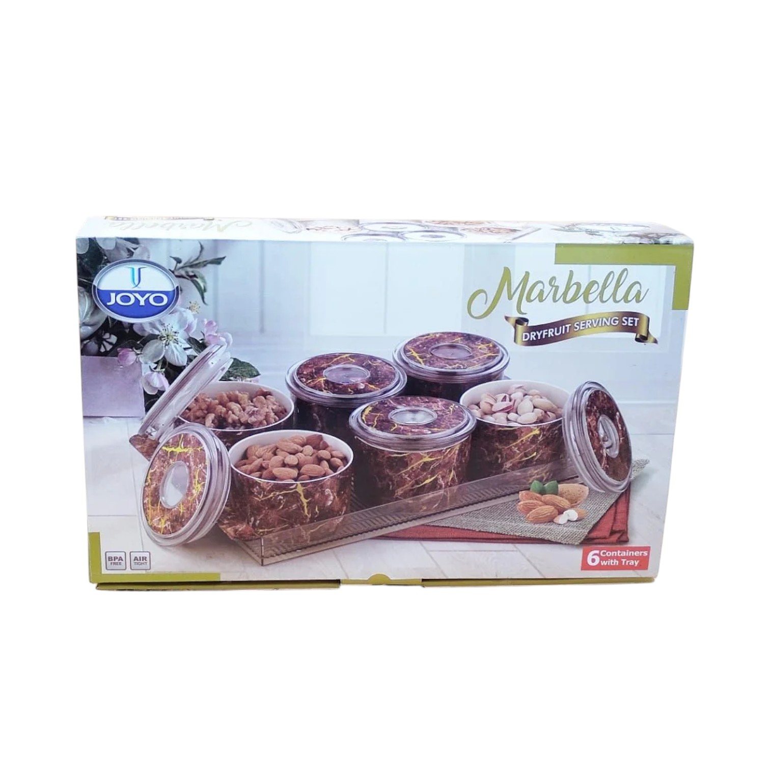 Joyo Marbella 6 Piece Dry Fruit Container – 500ml with Tray Set