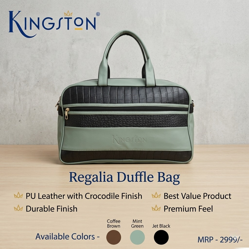 With its premium finish and stylish look, the Kingston Regalia duffle bag is suitable for travel, gym, office use, and even as a corporate gifting option. It combines functionality with elegance, making it a must-have for modern users.