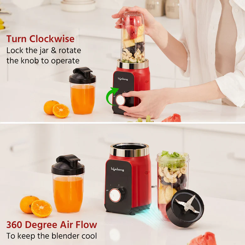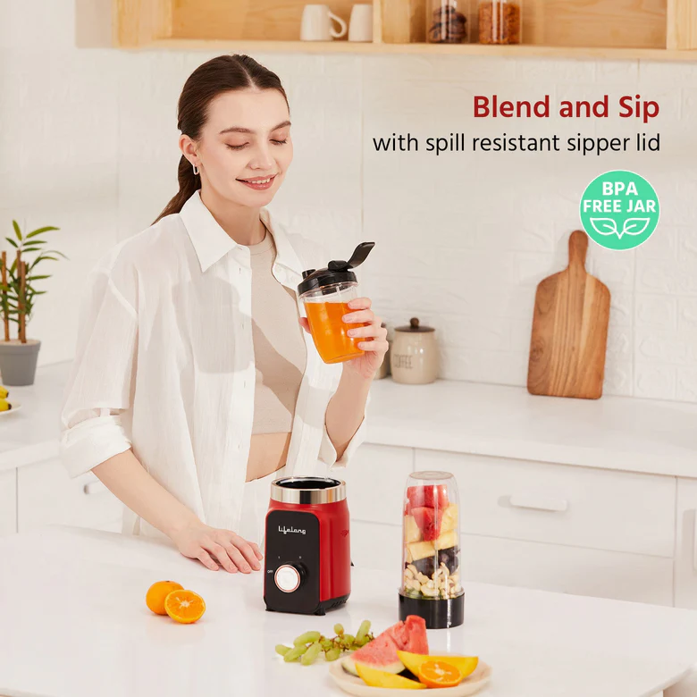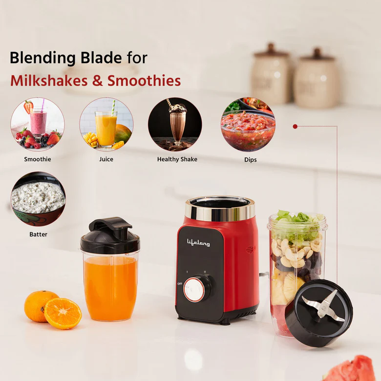 Power up your healthy lifestyle with the Lifelong Nutri Blender! This 500W mixer grinder makes perfect smoothies & juices with its 100% copper motor and stainless steel blades. Comes with 2 durable jars. Effortlessly blend fruits & vegetables for nutritious drinks. Your kitchen essential!