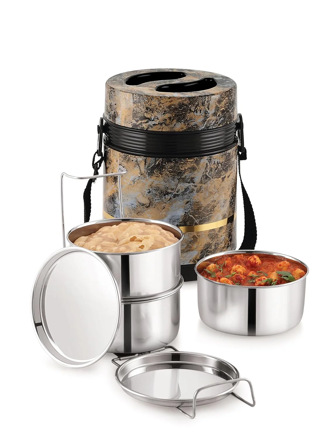• It keeps the food hot for long hours. Freedom of carrying liquid dishes as containers are leak proof, so that you can carry a variety of food without the fear of spillage.