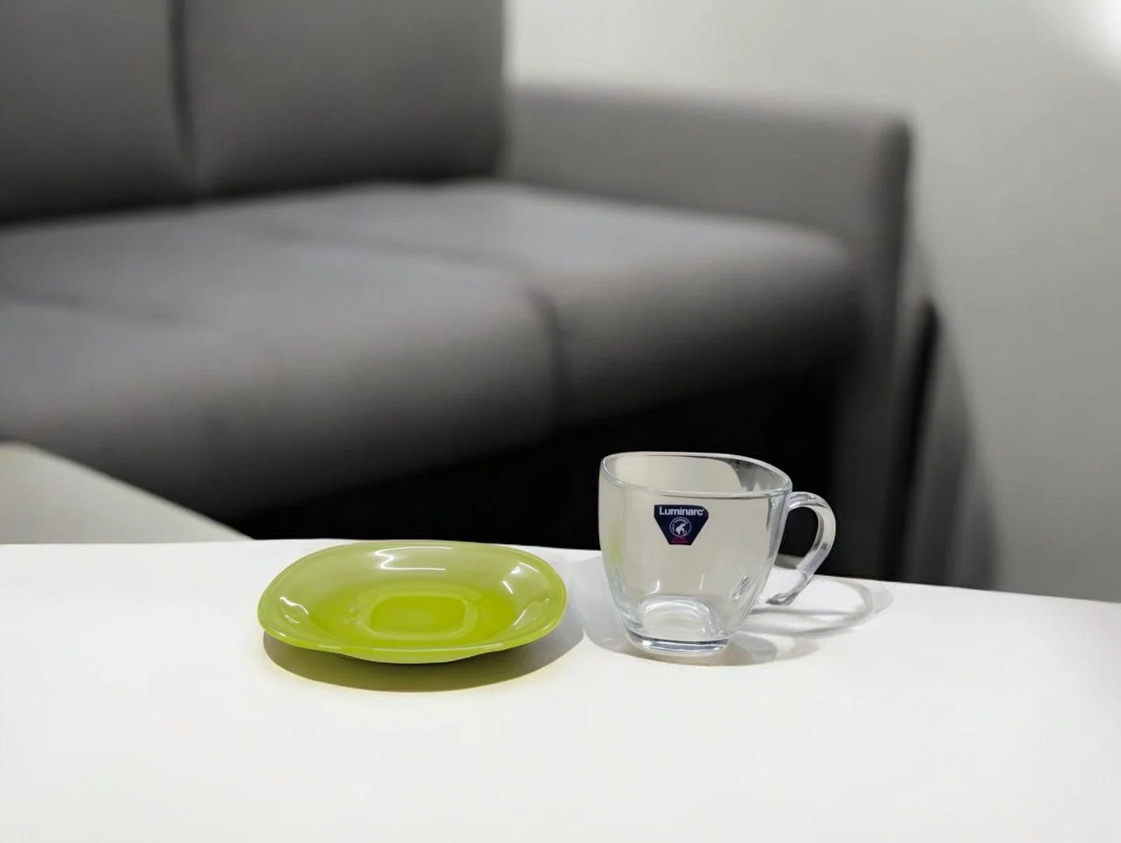 - The contemporary design of this Glass Cup Saucer is sure to impress guests and put a smile on your face in the morning.