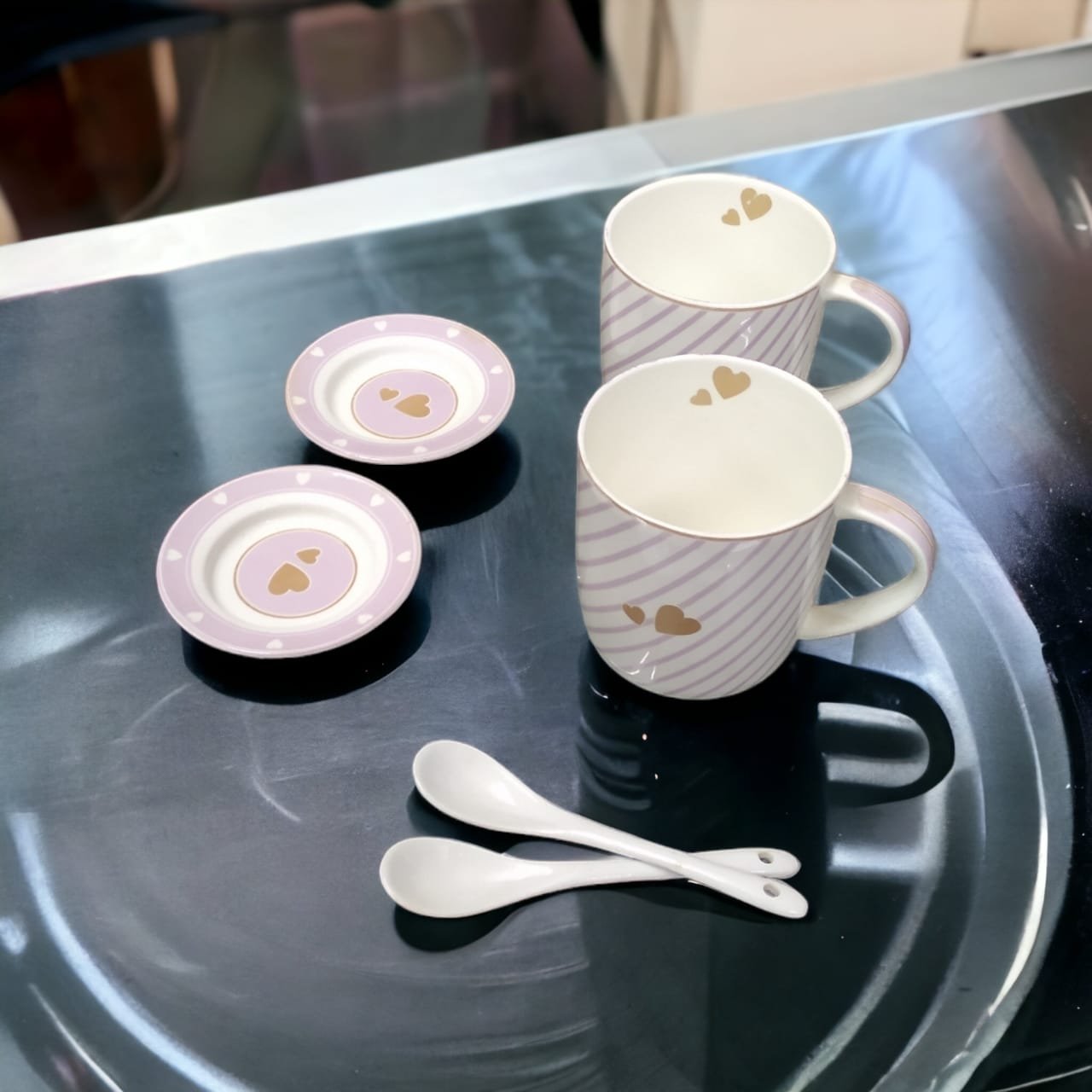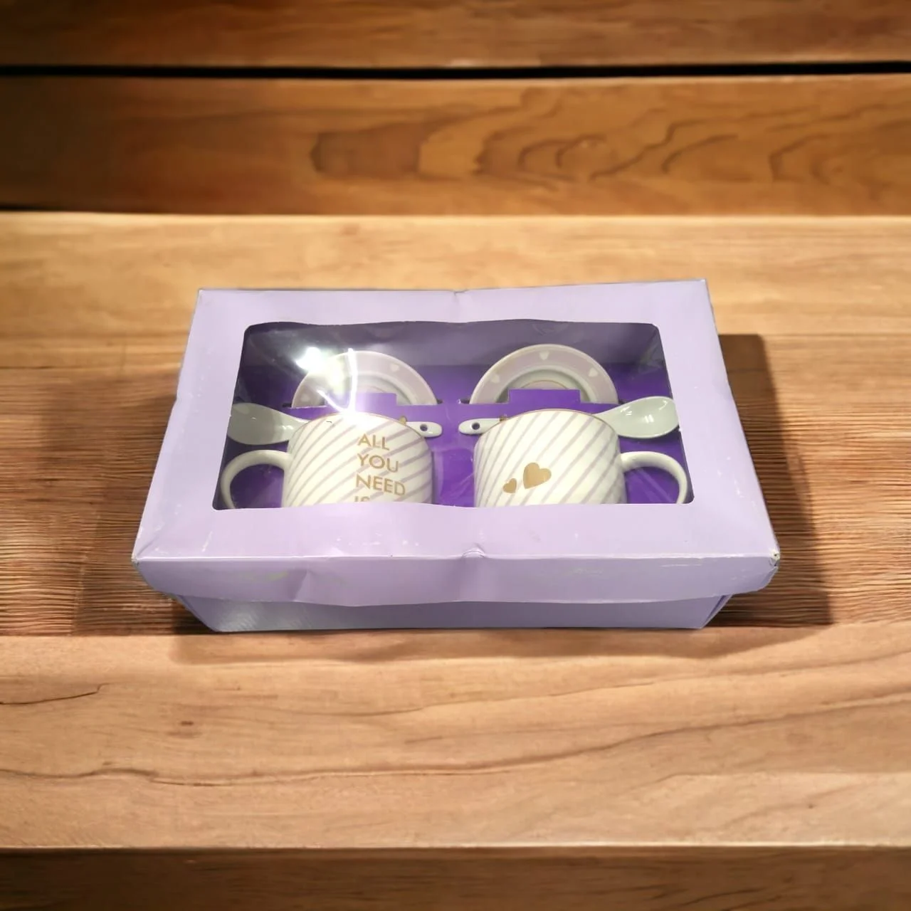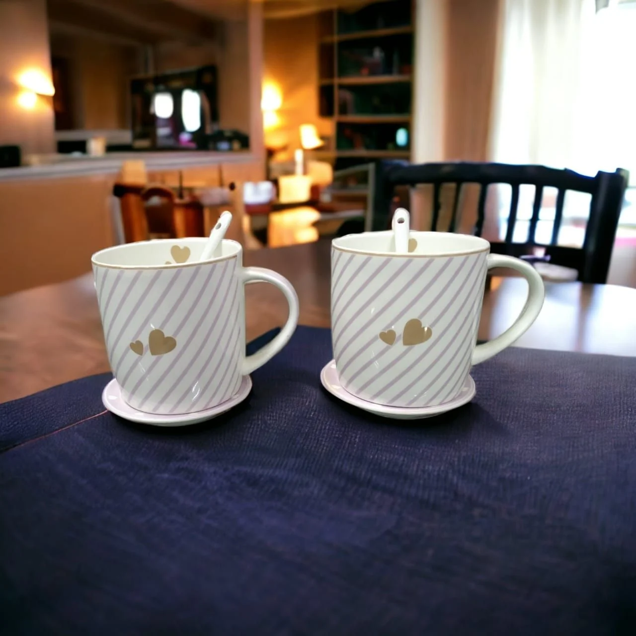 - Package contents: 2pc mug, 2pc coaster, 2pc spoons.