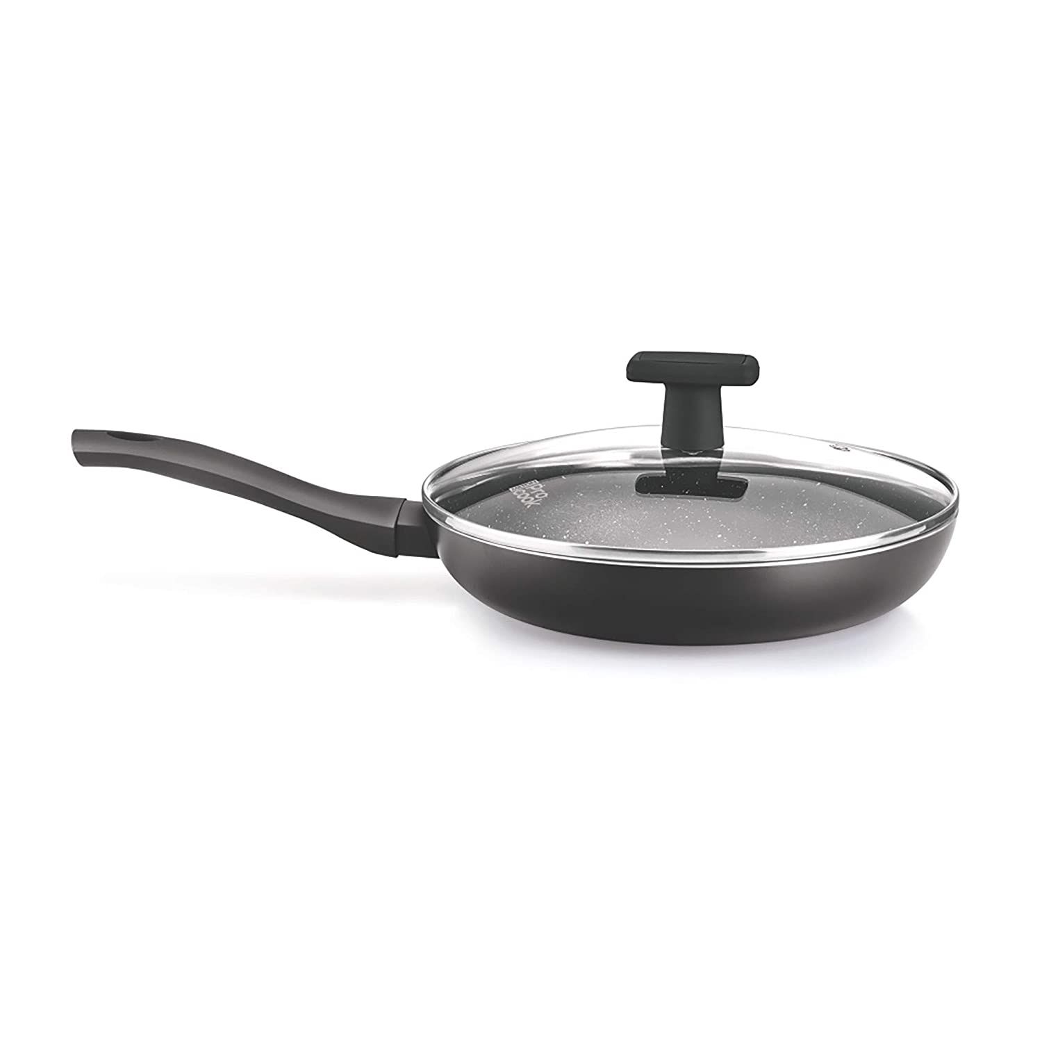 - Color: Black; Material: Aluminium; Package Contents: 1 – Piece Granito-Induction Fry Pan With Glass Lid (28 cm).
