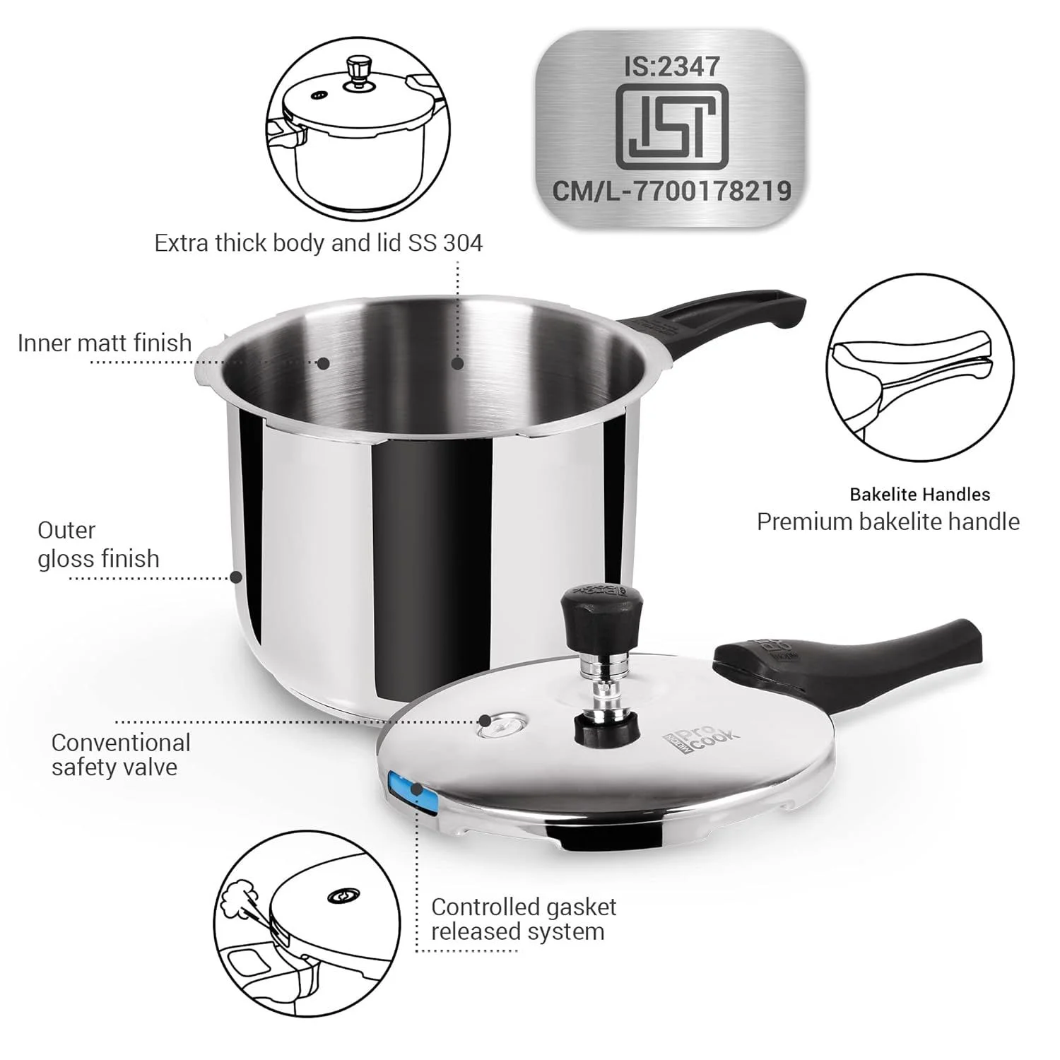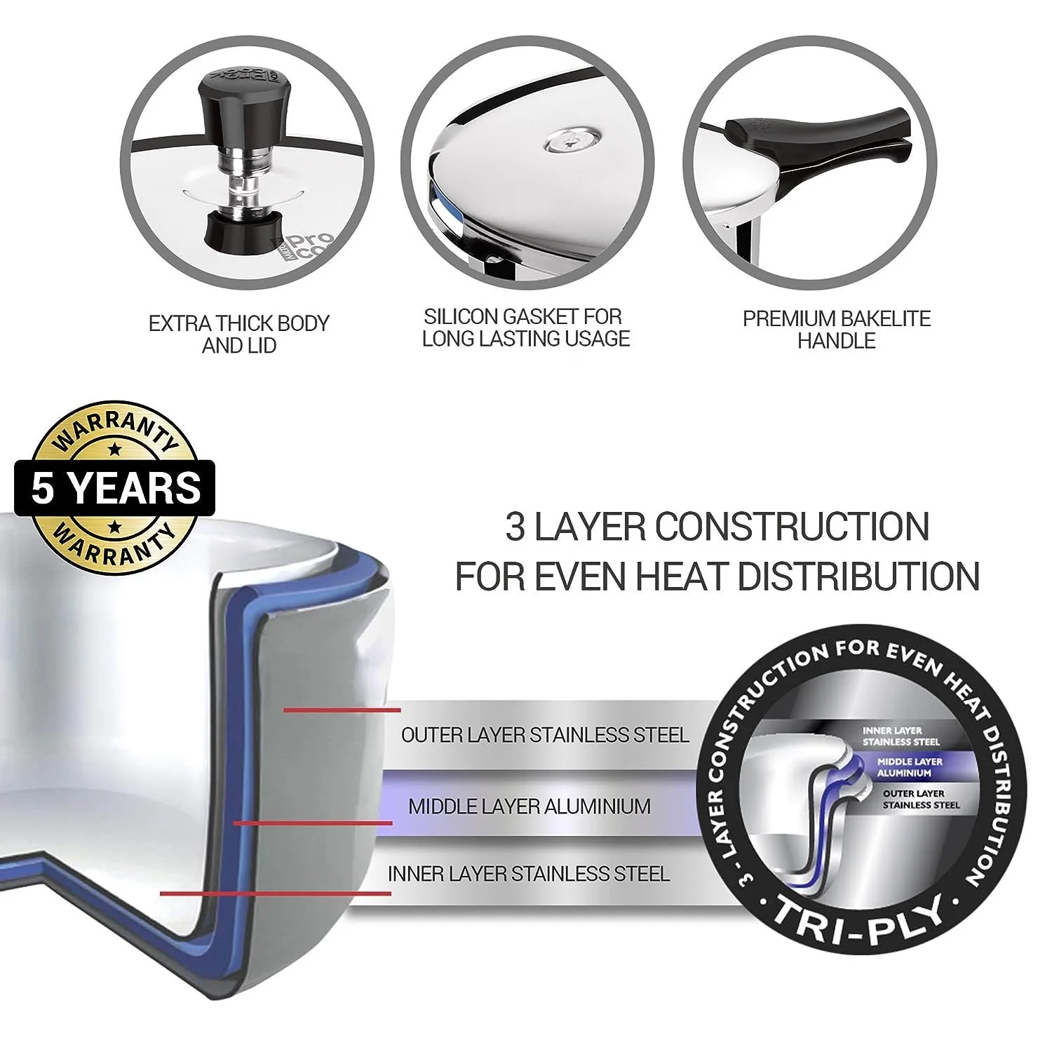 Milton Pro Cook Sandwich Bottom Stainless Steel Pressure Cooker with Outer Lid, 3 L