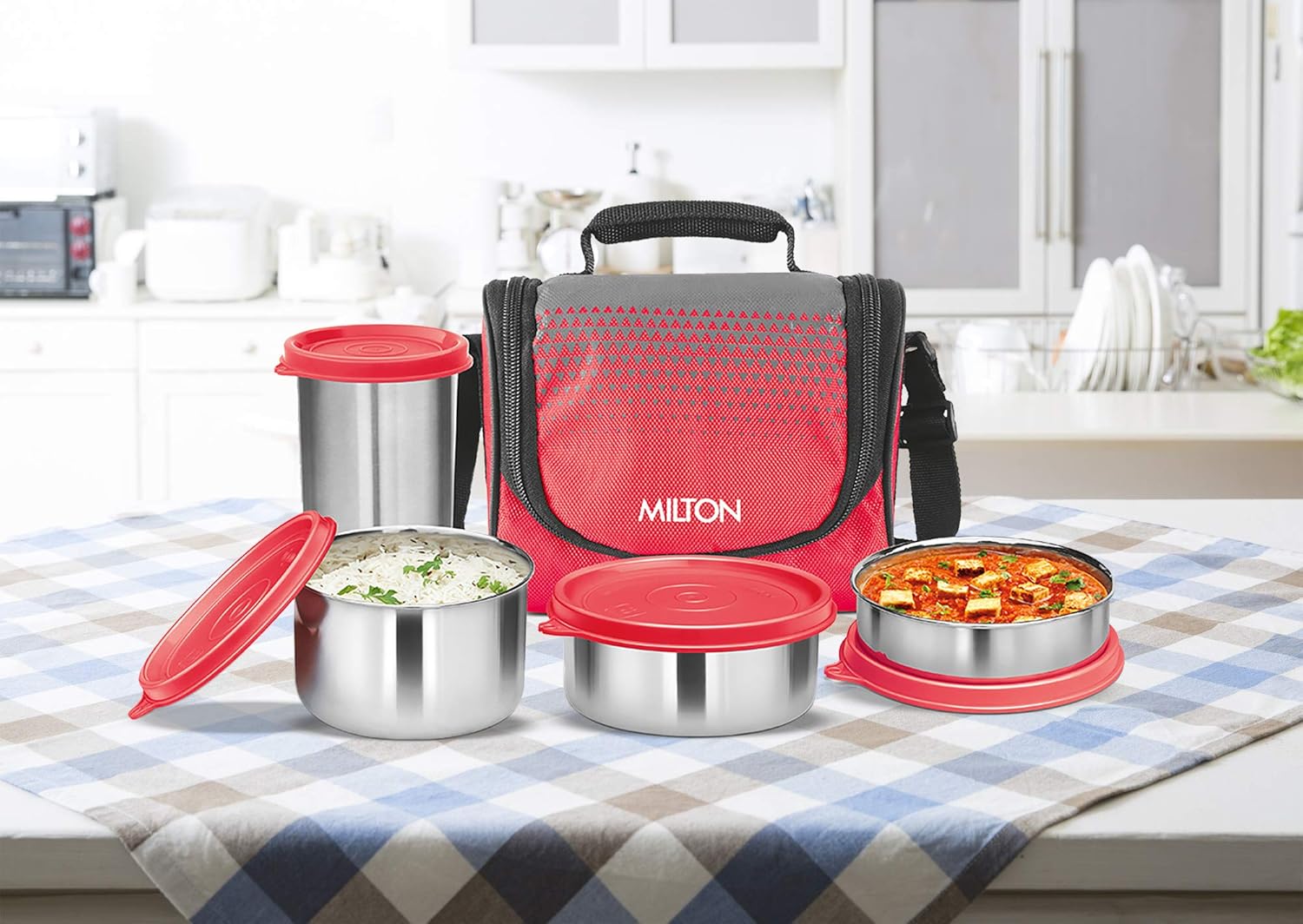 - Carrying your own home-cooked food to office is both a delicious way of consuming your daily meals. The Milton tiffin box is a great solution for carrying these meals in a stylish package.