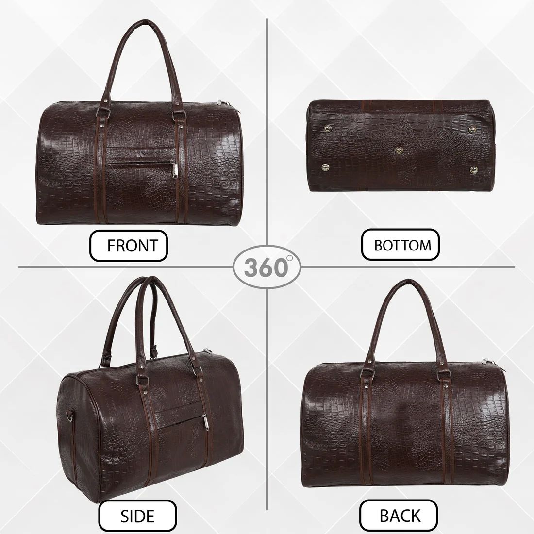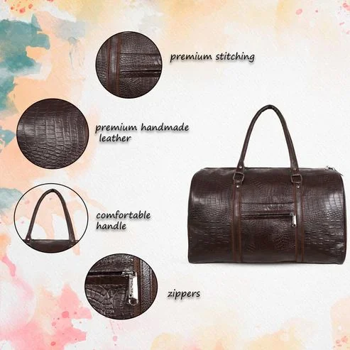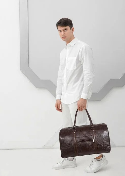 • Crafted with high-quality materials, this duffel bag boasts an elegant crocodile print design that will make you stand out.