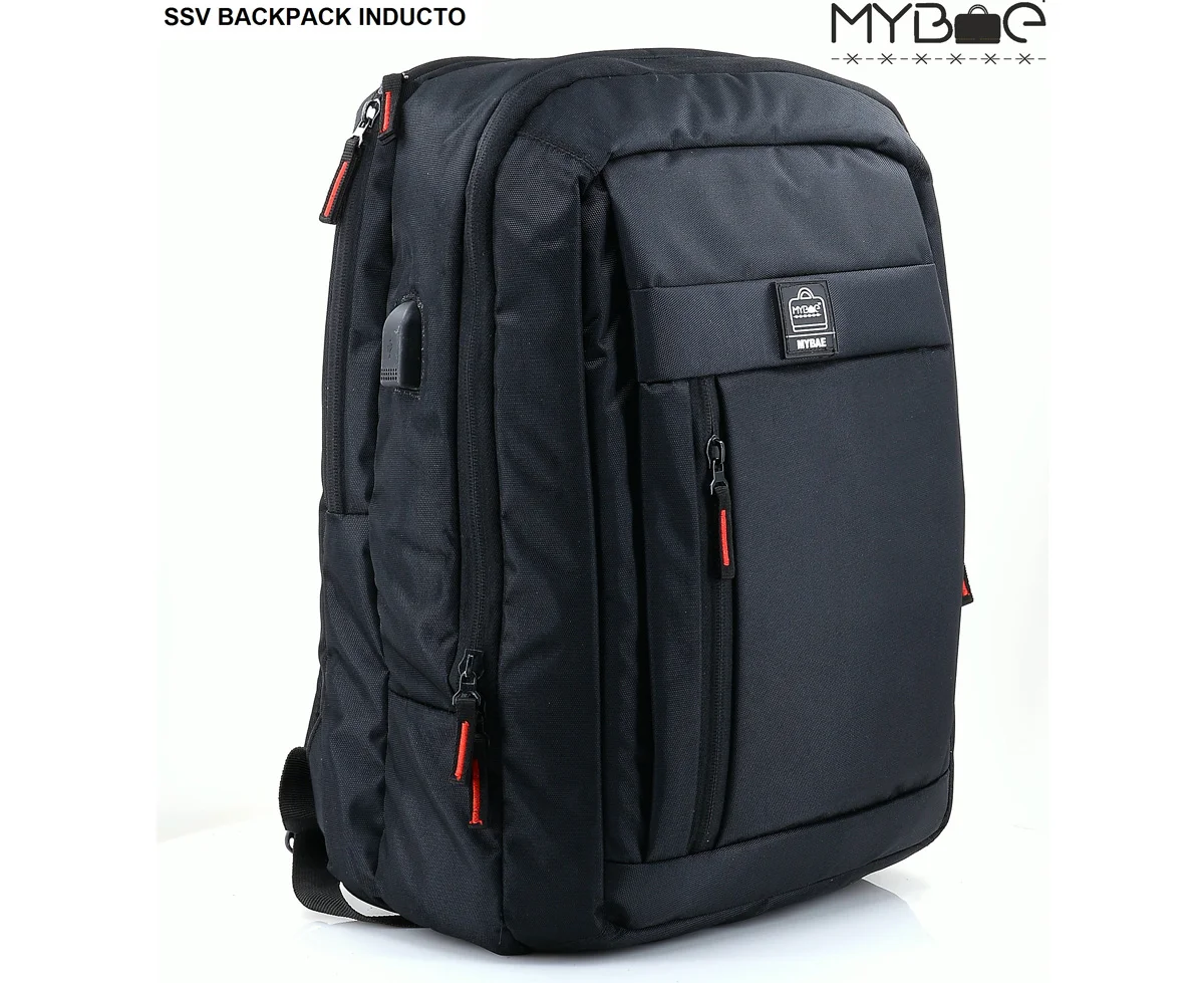 Stay connected on the go with the Mybae Inducto Laptop Backpack featuring a built-in USB charging port. Easily charge your smartphone or devices anytime by connecting your power bank inside the bag.