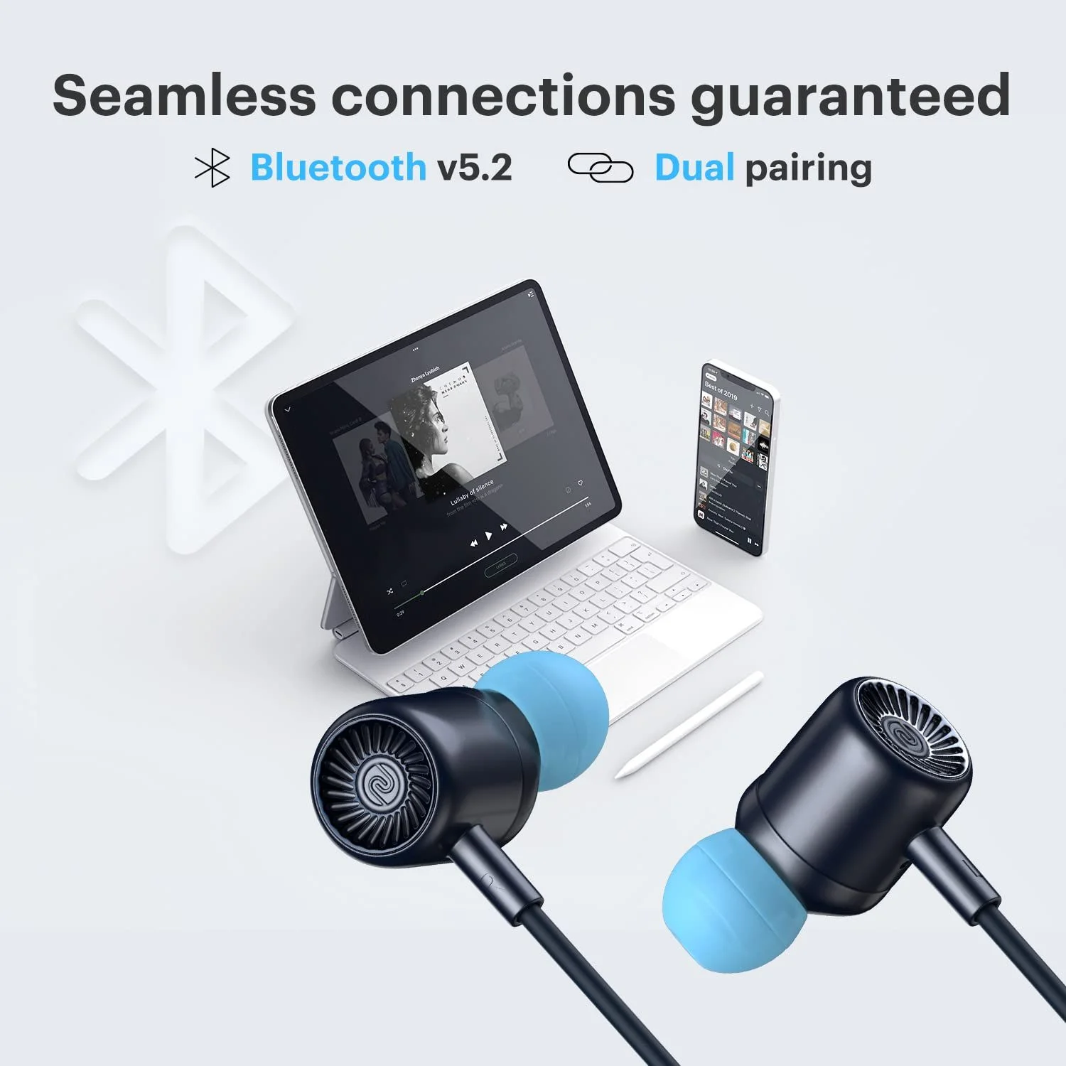 • Bluetooth v5.2: Get seamless, lag-free connectivity across all your audio needs.