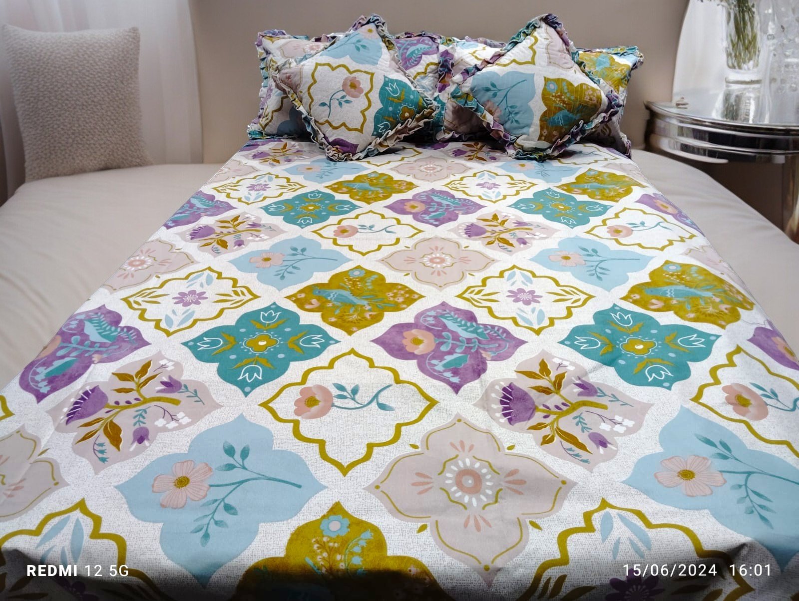 - Package contents: 1pc bedsheet, 2pc quilted pillow, 2pc quilted cushions.