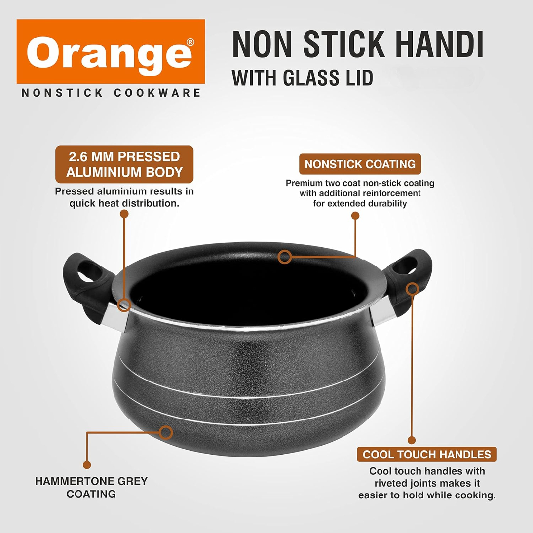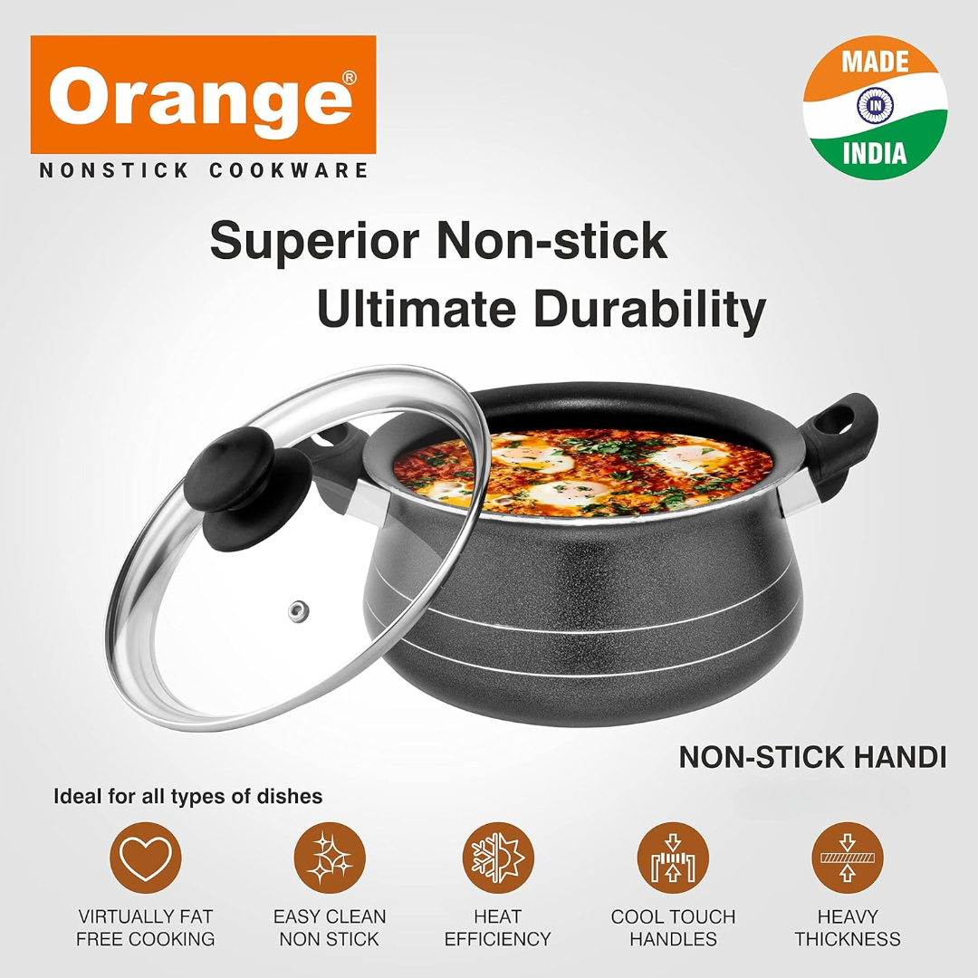Crafted with a durable nonstick coating, this handi ensures food doesn’t stick, allowing for low-oil cooking and easy cleaning. The strong body construction promotes even heat distribution, helping you achieve perfectly cooked meals every time.