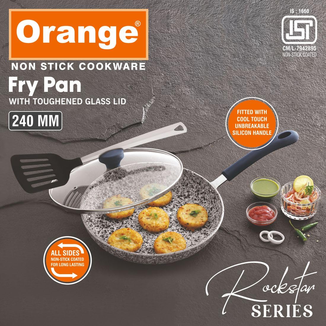 The Orange Rockstar 240mm Fry Pan is crafted with a sturdy 4mm thick body that ensures excellent durability and long-lasting performance. Its robust design provides stability and reliability for everyday cooking.