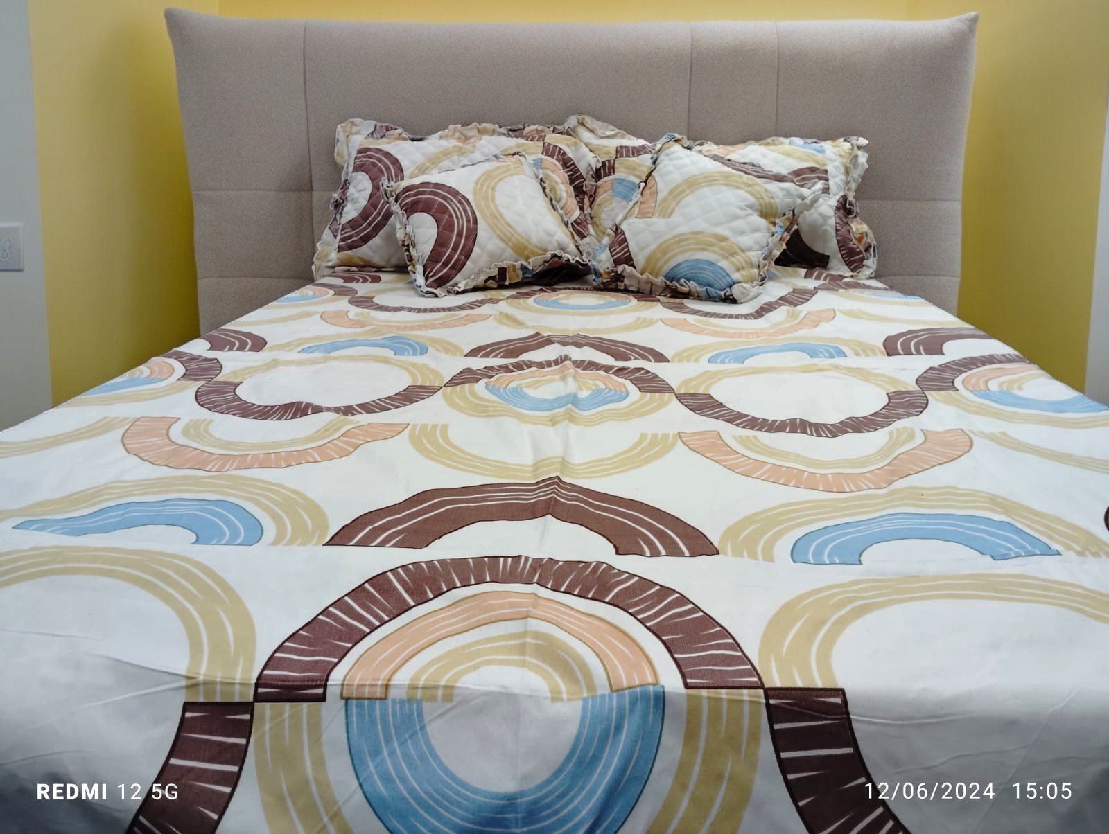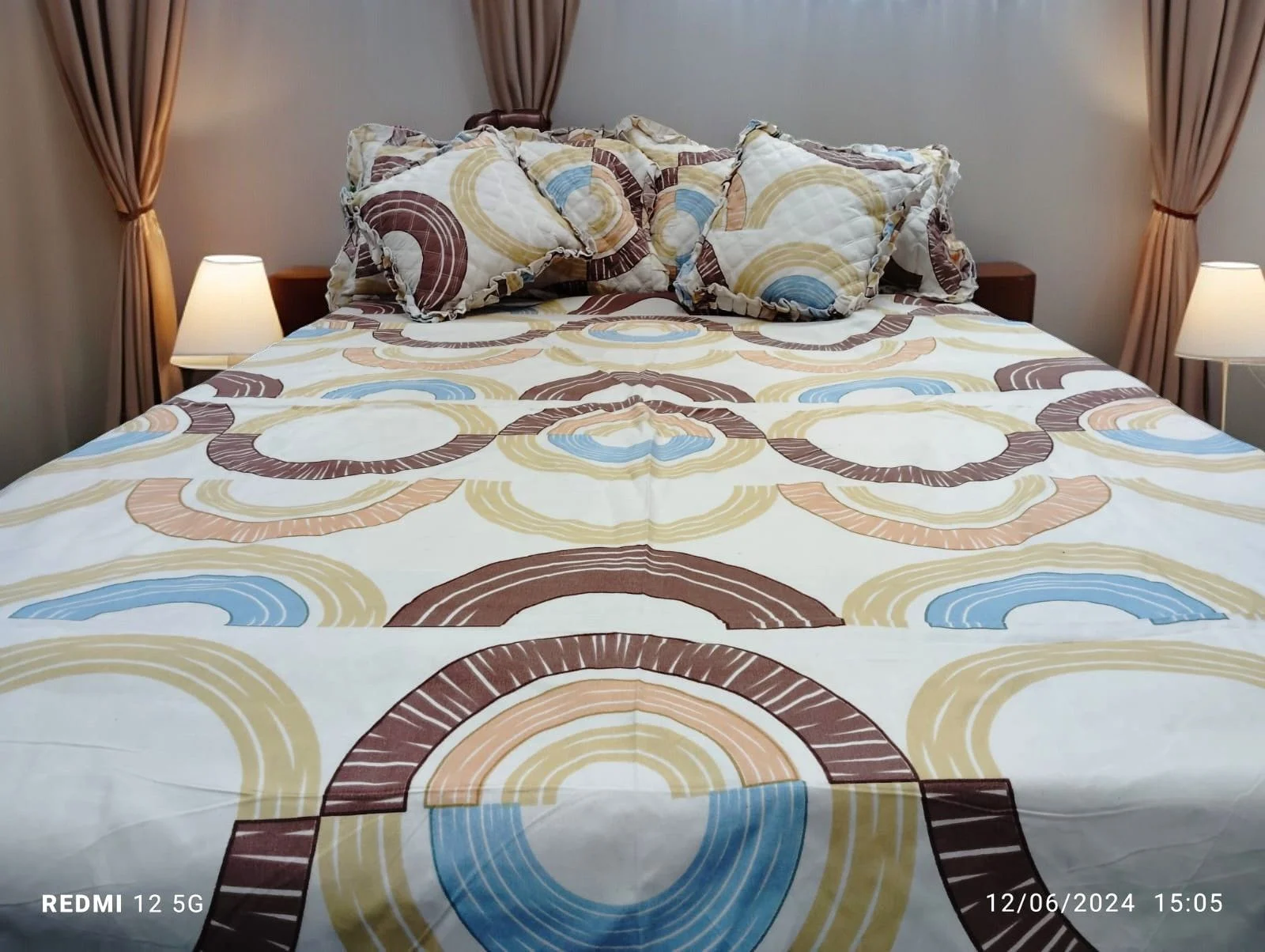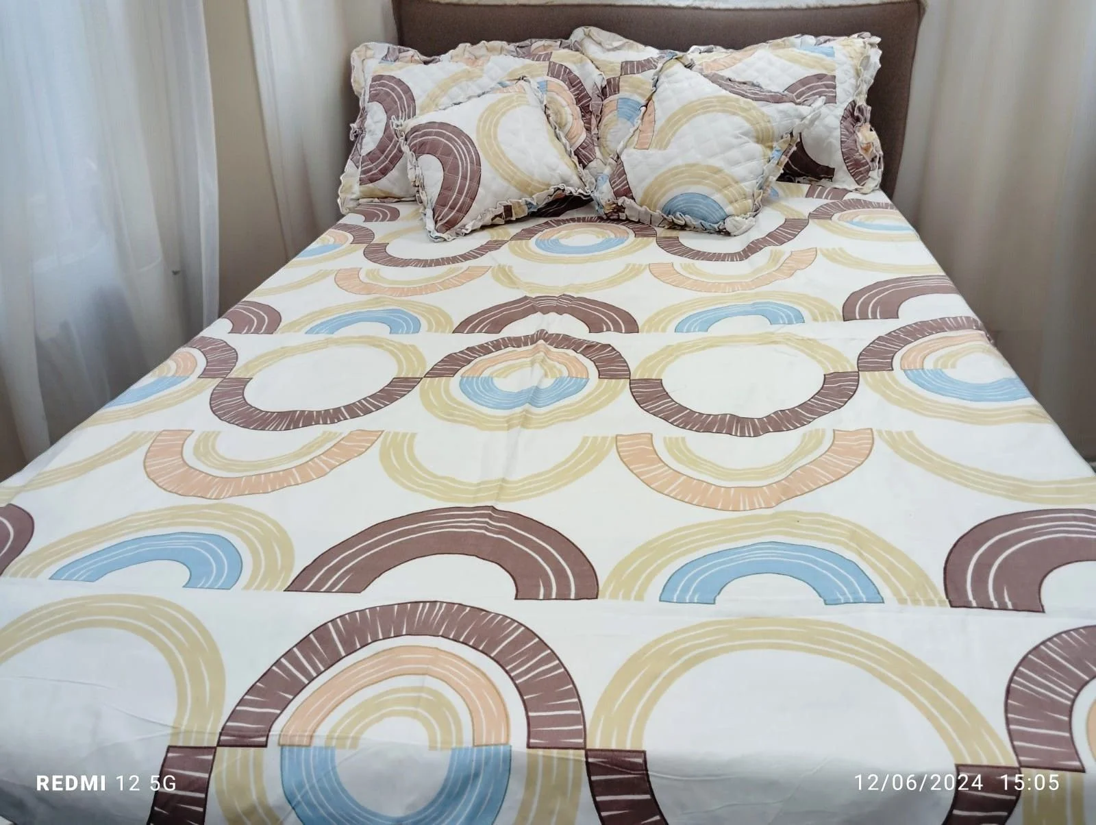 • Package contents: 1pc bedsheet, 2pc quilted pillow, 2pc quilted cushions.