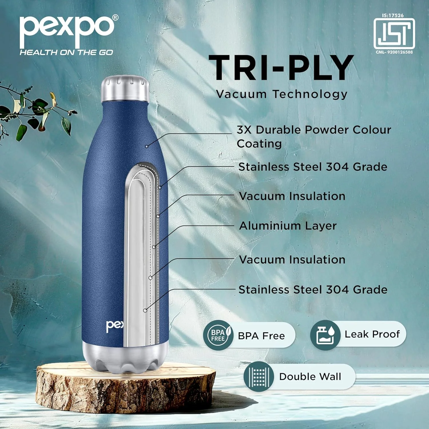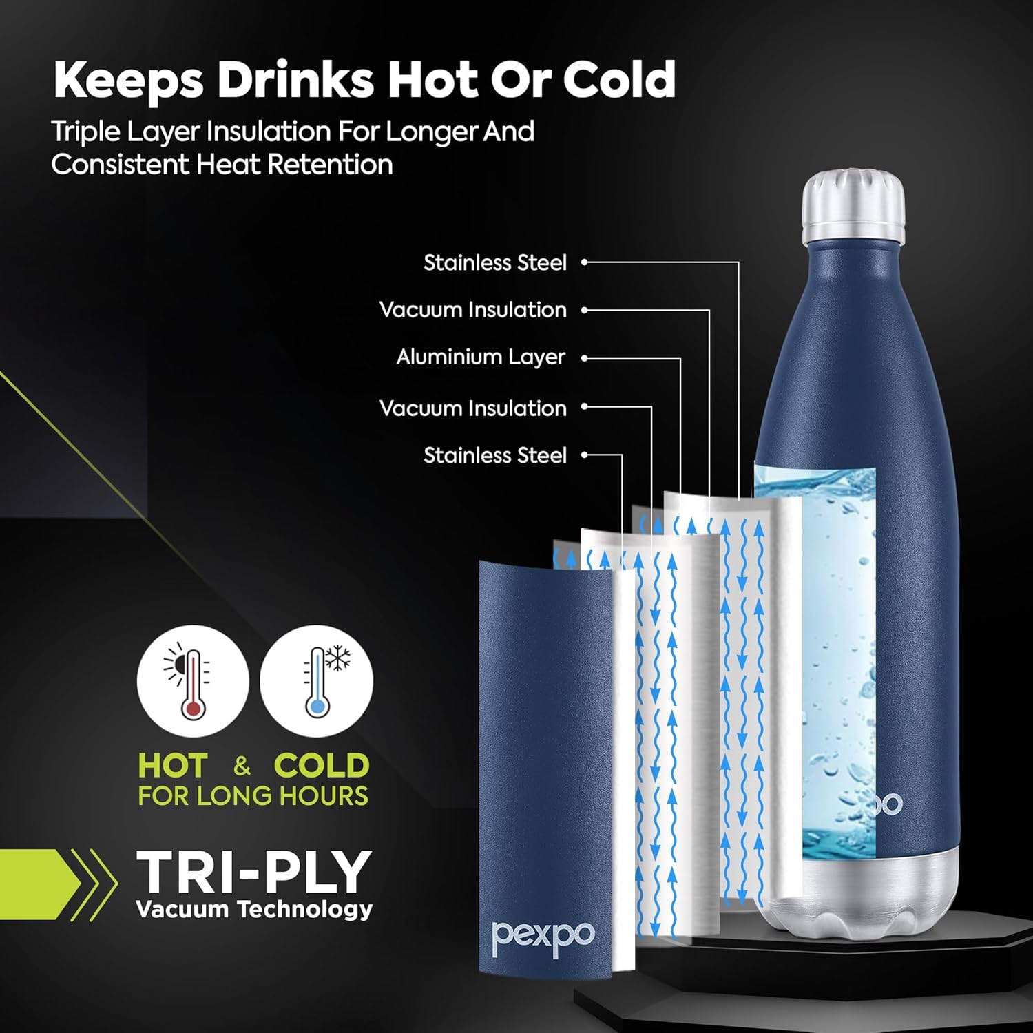 Pexpo Triply Electro Vacuum Insulated Water Bottle – 1500ml