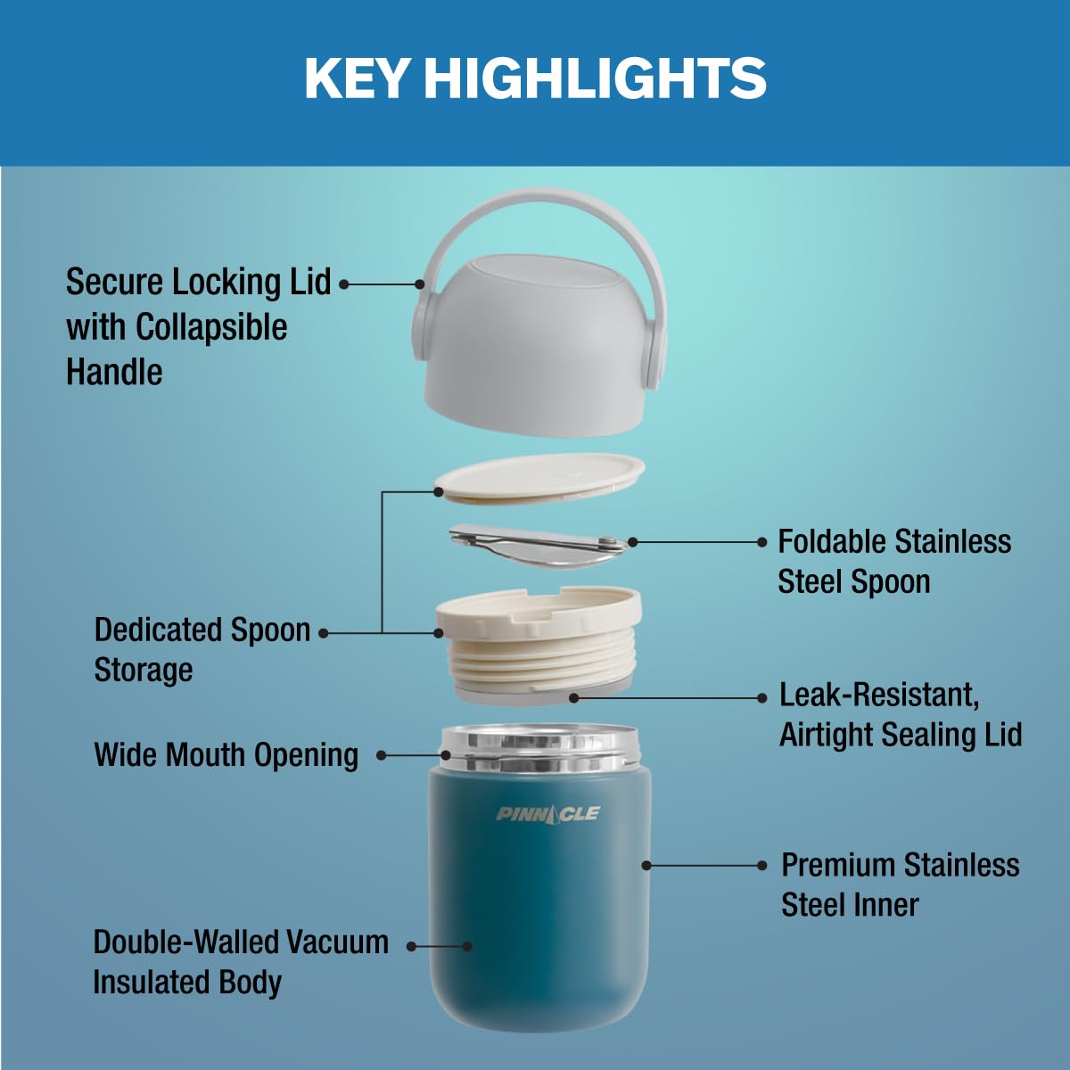 - Foldable Stainless Steel Spoon: Includes a convenient foldable spoon stored neatly inside the lid for easy snacking and meals on the go.