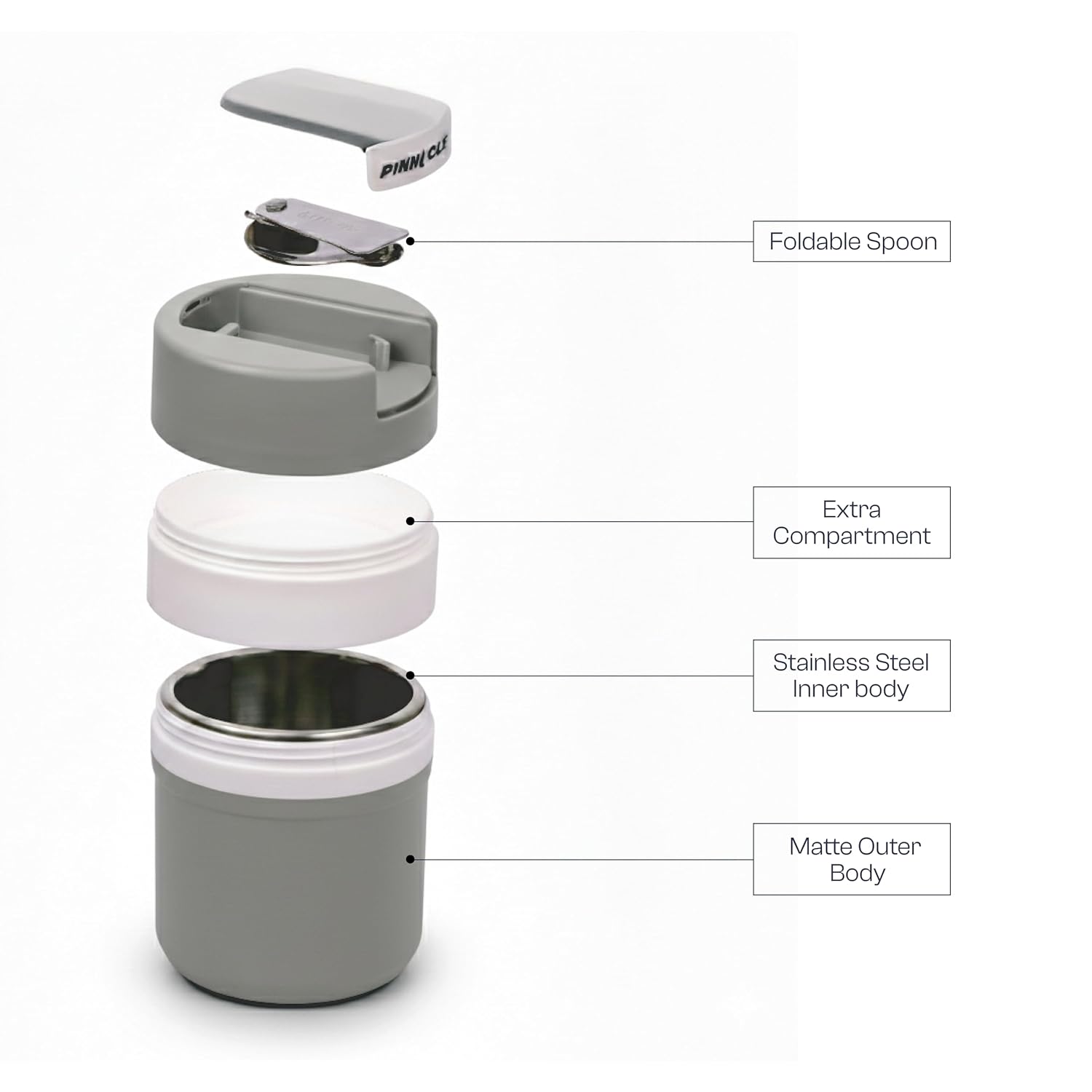 - Stainless Steel Foldable Spoon: This insulated food jar includes a thoughtfully designed stainless steel foldable spoon that fits seamlessly into the lid compartment .Compact, hygienic & always ready for use. Perfectly suited as a food flask for hot meal with spoon, a hot & cold dabba, or an insulated food container, it provides the convenience on the go.