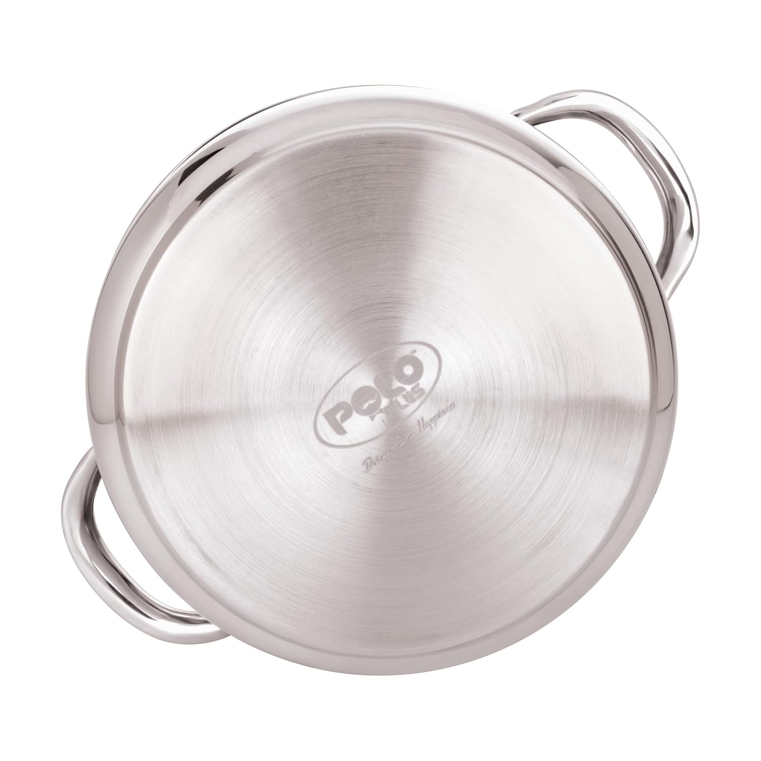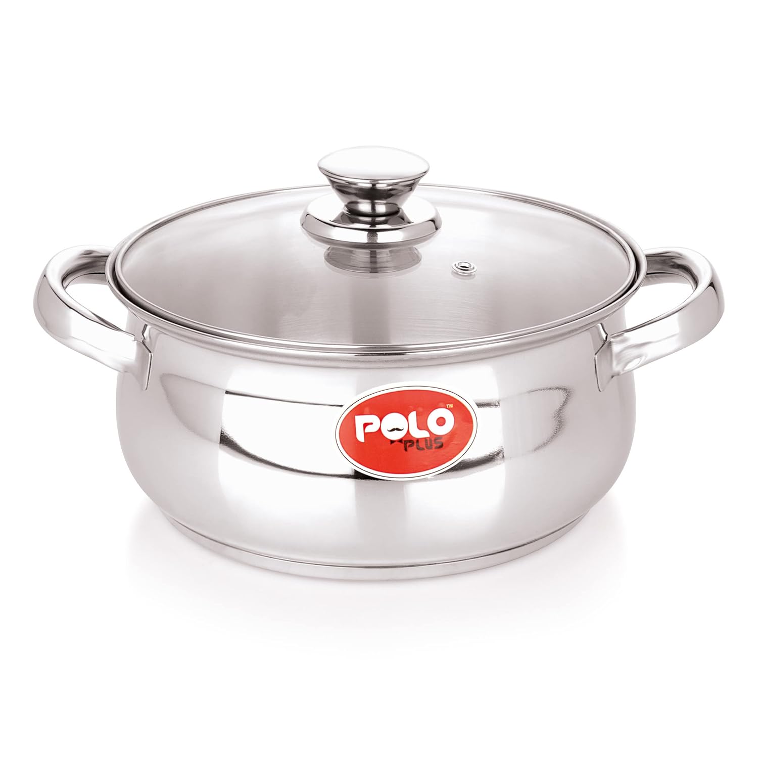 - Cook & Serve Belly Shape Cooking PotIt is a multi purpose cooking set. Easy to clean and hygenic stainless steel, Tri ply induction bottom. Made of heavy gauge stainless steel and tempered glass lid with steam release vents