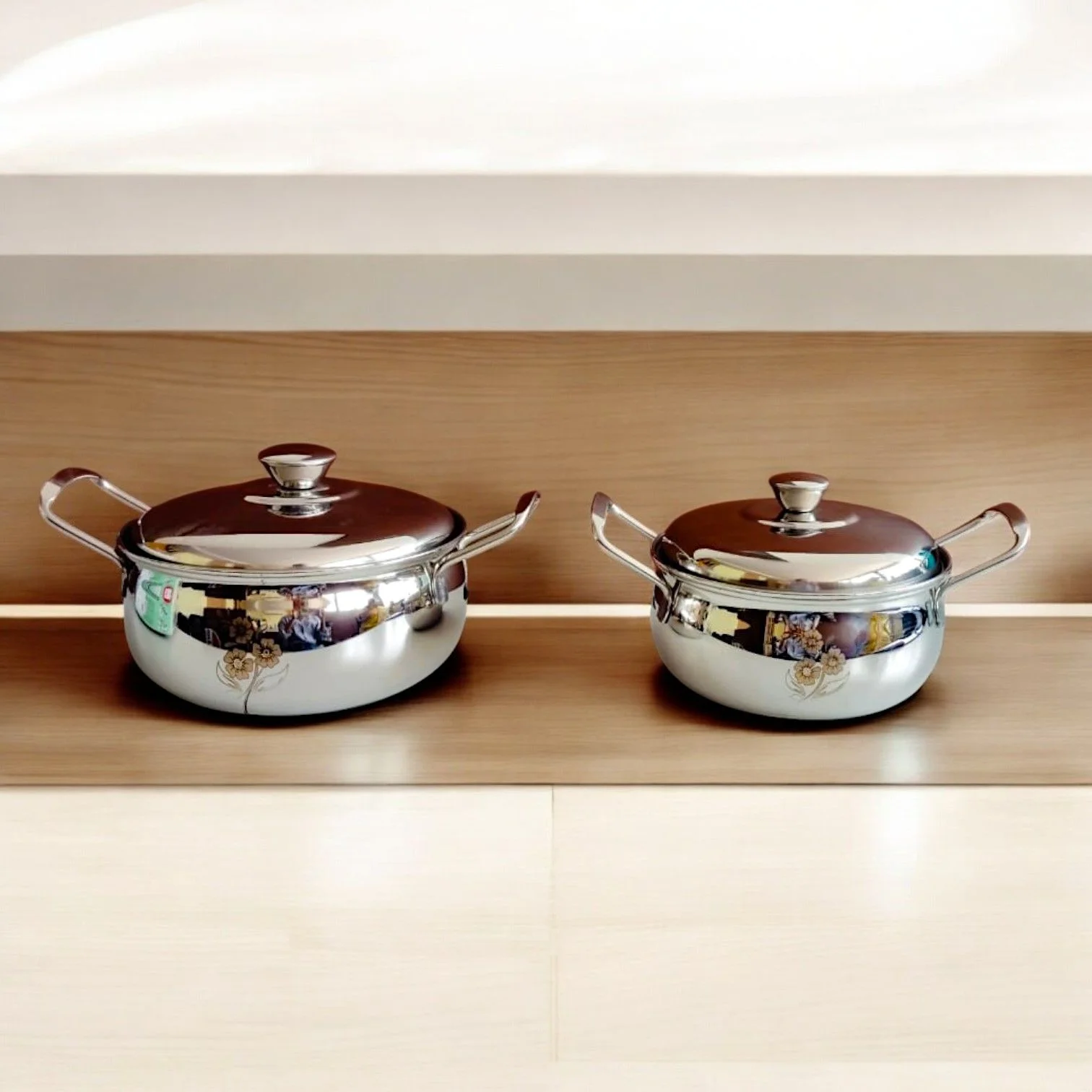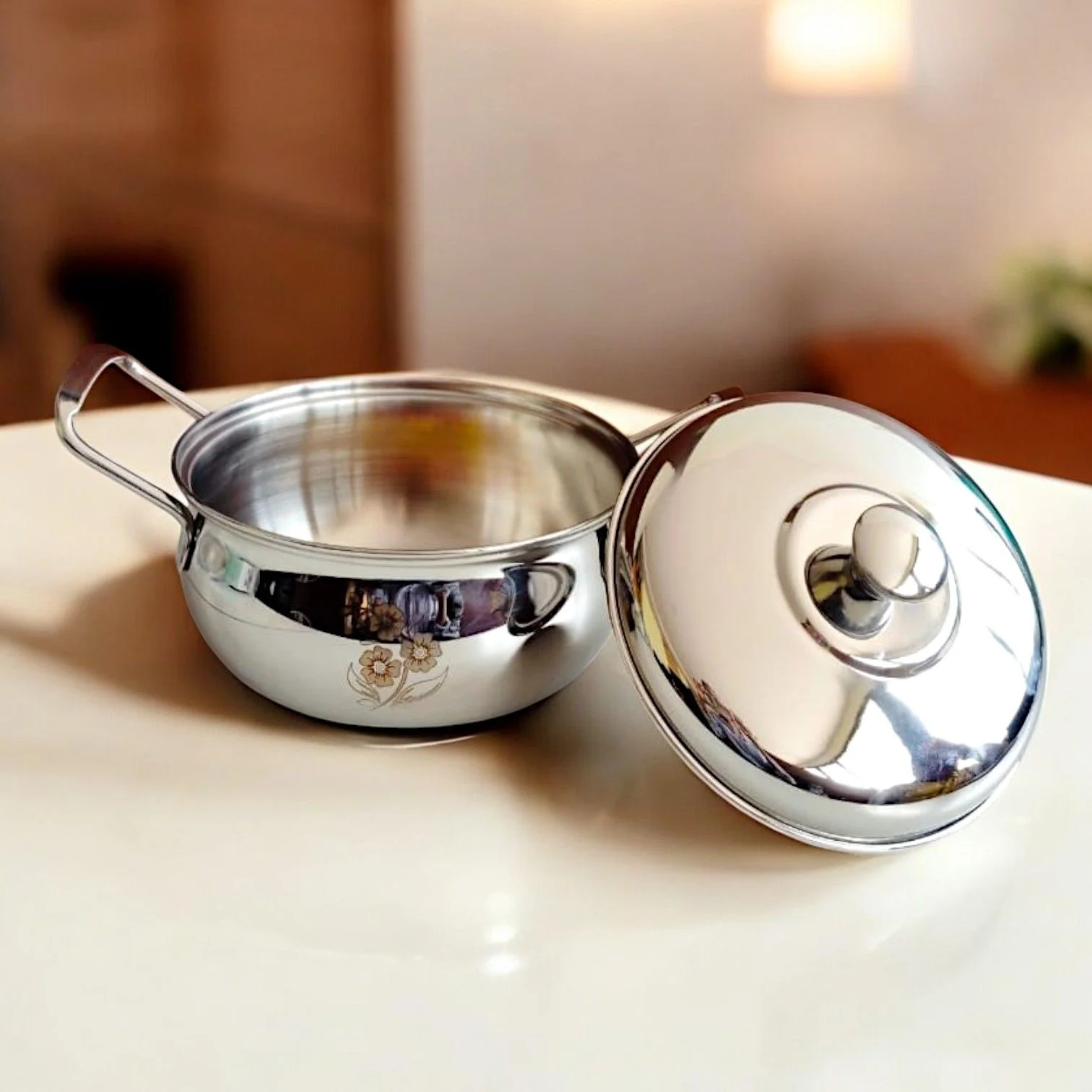 • Cook & Serve Cooking Pot is a multi purpose cooking set. Easy to clean and hygienic stainless steel, flat bottom. Made of heavy gauge stainless steel and steel lid.
