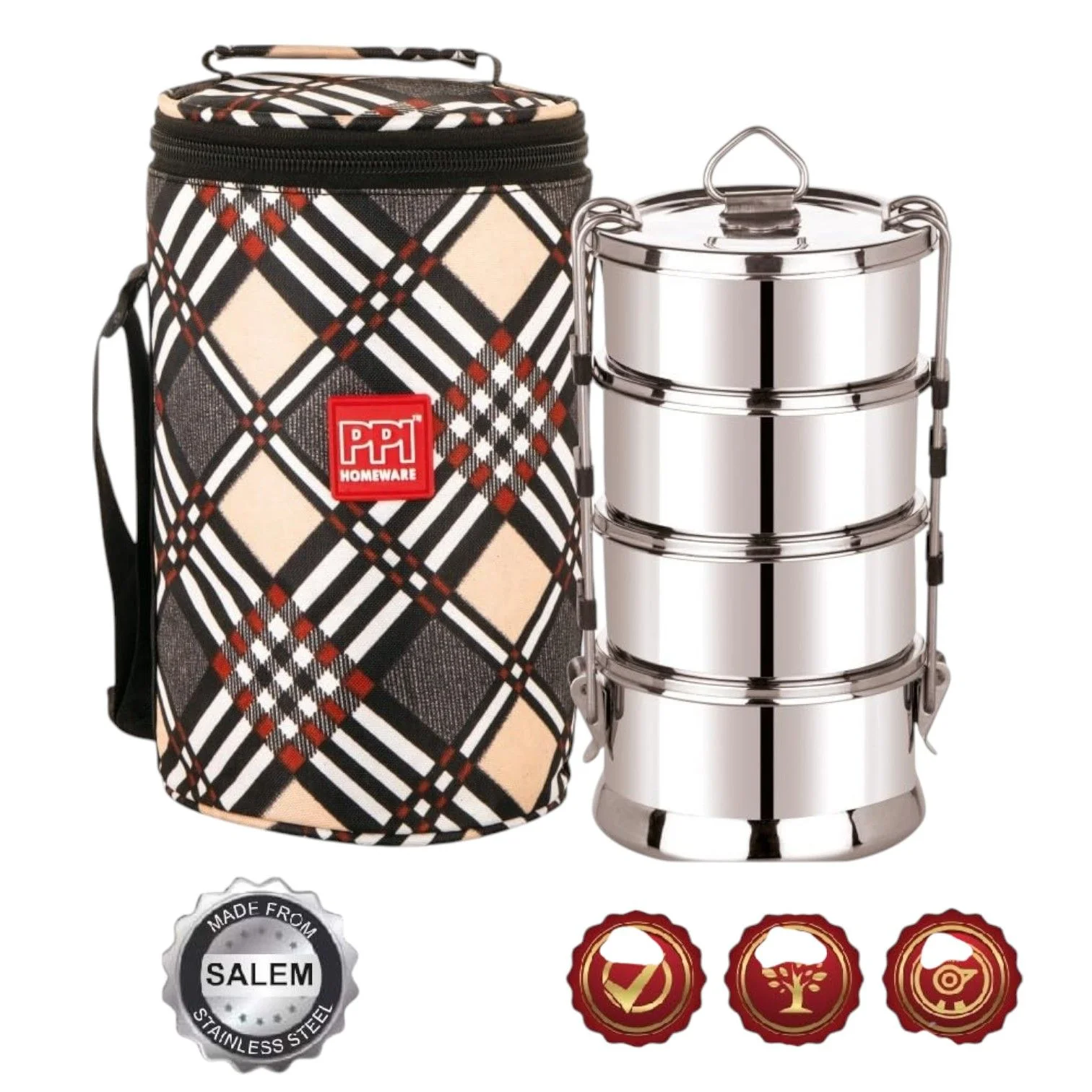 - CAPACITY: Four-tier stainless steel lunch box with total 1790 ml capacity, perfect for carrying multiple dishes or meals