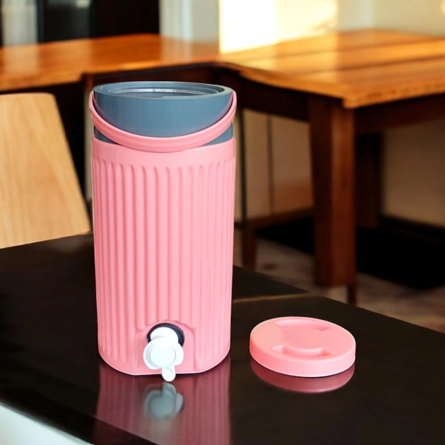 - Food Grade BPA free plastic inner keeps contents odourless throughout the day. Capacity: 3 Ltr.